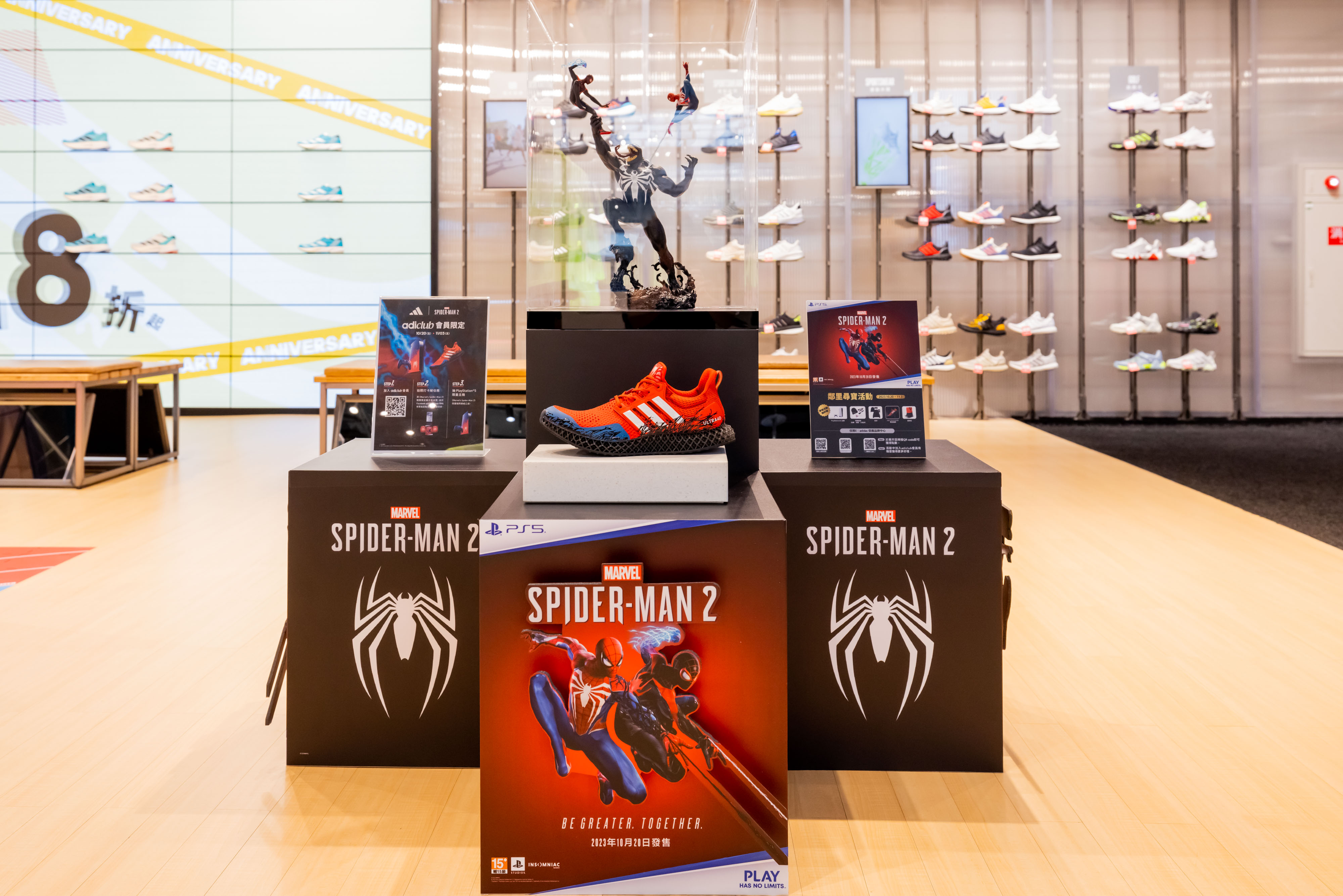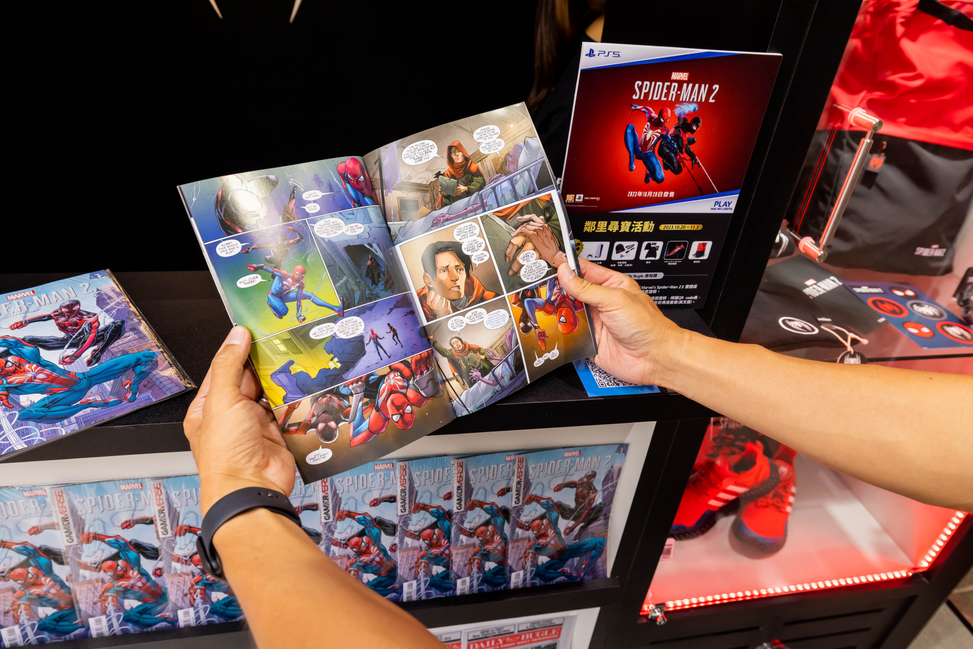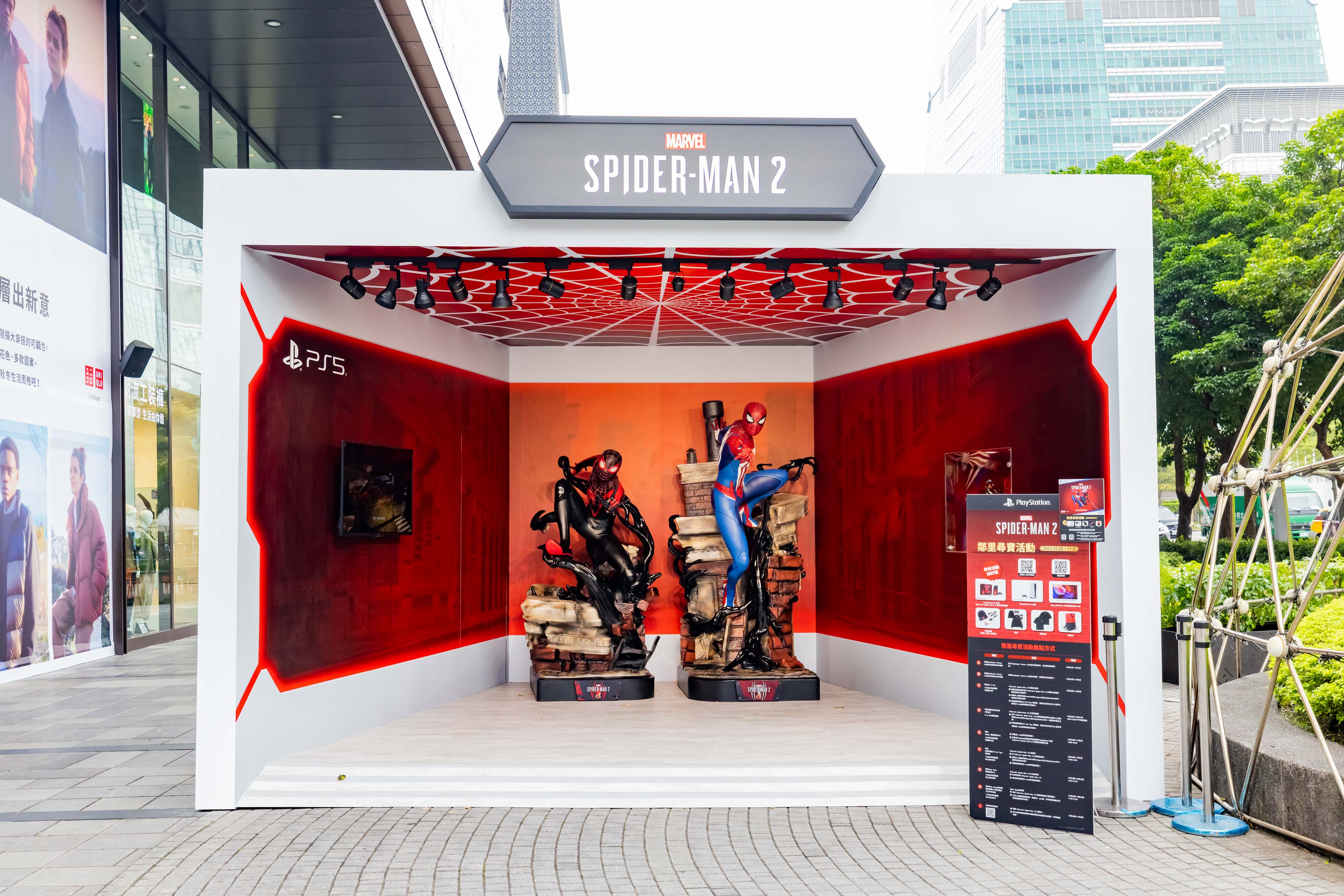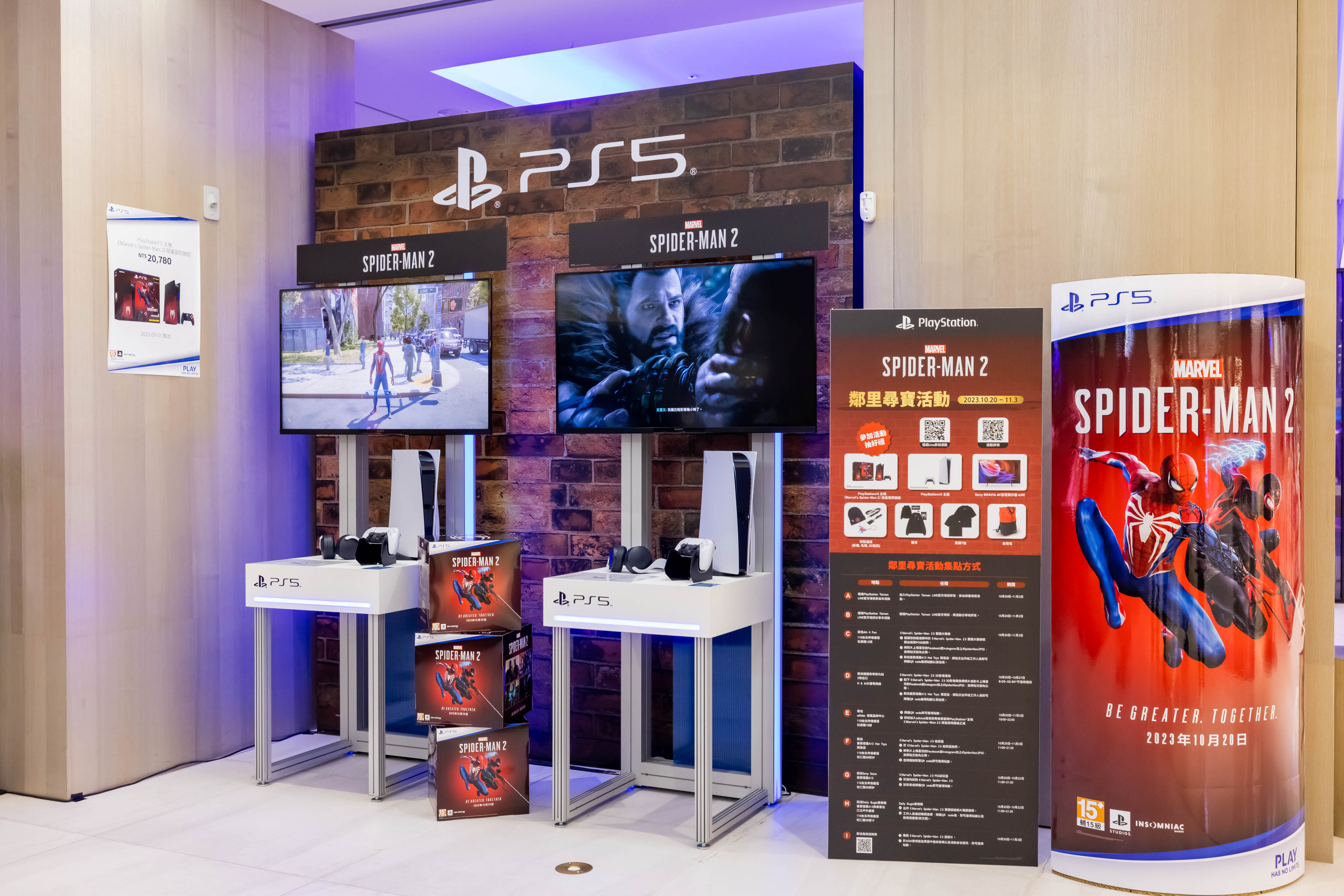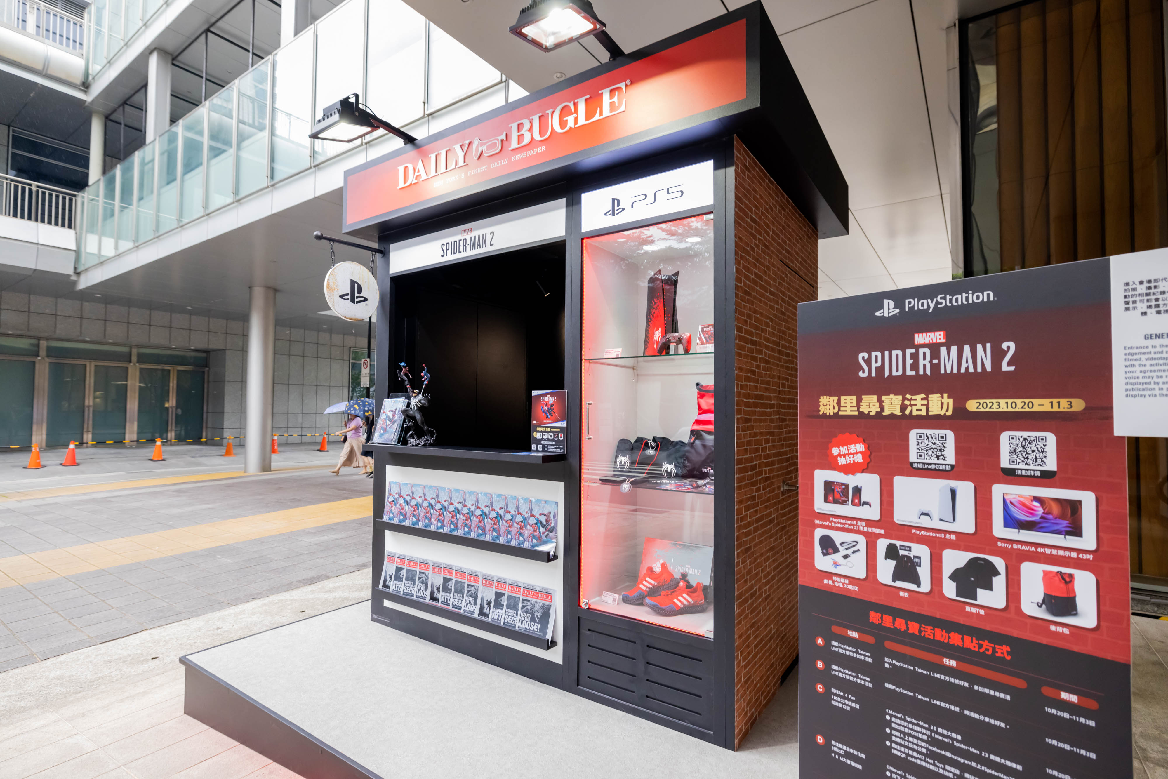 PlayStation®5(PS5™)獨佔遊戲《Marvel's Spider-Man 2》於今(20)日全球同步上市,為慶祝遊戲正式上市,除在台北東區打造《Marvel's Spider-Man 2》3D影音廣告外,特別推出「鄰里尋寶活動」,活動即日起開跑!現場以《號角日報》為主題打造「Daily Bugle書報攤」,憑《Marvel's Spider-Man 2》實體版遊戲片購買證明即可免費兌換原文前傳漫畫書!兩位主角麥爾斯·摩拉斯及彼得·派克也將於信義區驚喜登場!即日起參與活動並完成任務就有機會可以獲得PlayStation®5 主機《Marvel's Spider-Man 2》限量版同捆組、原裝進口限量遊戲週邊、adidas ULTRA 4D ADVANCED聯名鞋款或Sony BRAVIA 4K智慧顯示器等超值大獎。歡迎玩家前來同樂!