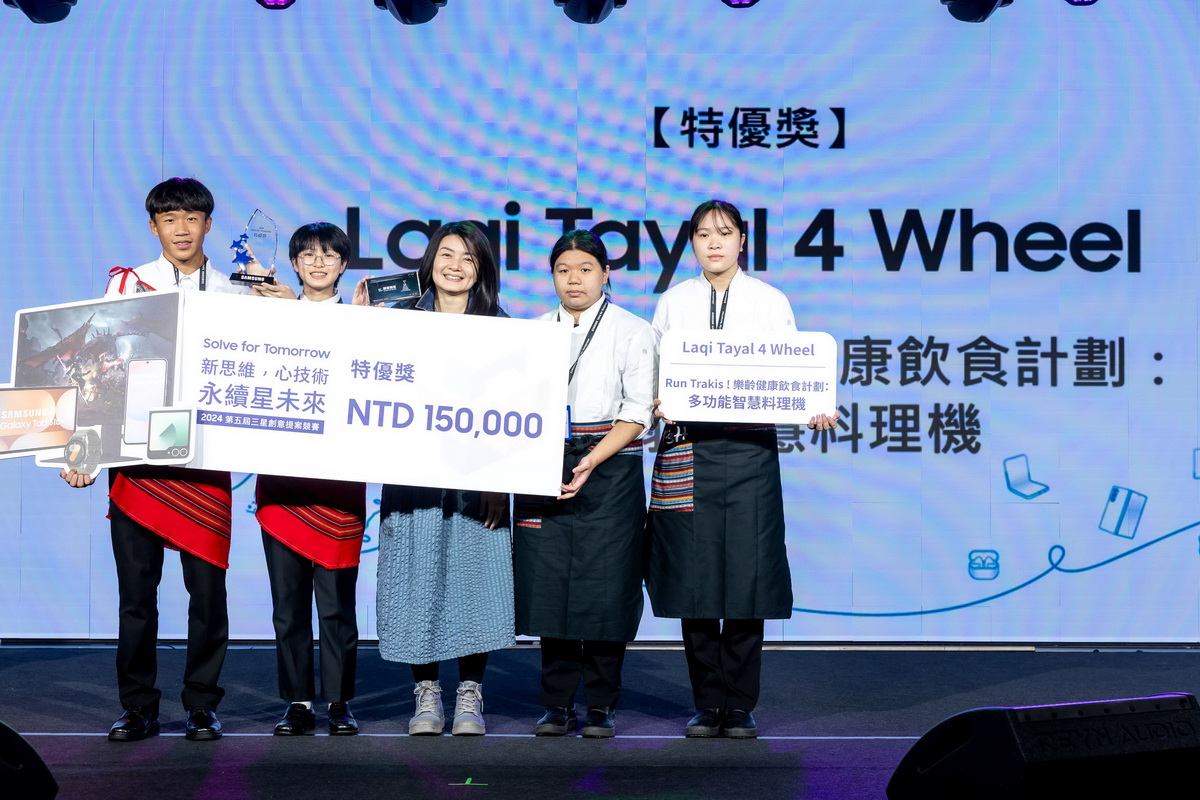 台灣三星第五屆Solve for Tomorrow「新思維,心技術,永續星未來」創意提案競賽於今(29)日舉行決賽暨頒獎典禮。本屆競賽邀請臺北市政府教育局擔任競賽指導單位,鼓勵高中職五專學生從日常生活中挖掘周遭面臨的問題,並透過科技與創新思維提出貼近台灣在地需求的創意解方,展現年輕世代對永續議題的深刻關懷與實踐力。歷經10個月的賽程,來自全台的8組菁英隊伍(表一)站上最終舞台,以STEM領域知識與行動力回應挑戰,競逐總獎額超過百萬的獎項與榮譽。比賽最終由Teach for Future團隊獲得首獎,其作品AI大陸冒險-為中小學生設計的遊戲化AI學習平台,結合AI技術與遊戲,讓學生以更有趣的方式學習AI;特優獎則由Laqi Tayal 4 Wheel 獲得,他們創作的Run Trakis!樂齡健康飲食計劃:多功能智慧料理機,照護偏鄉獨居老人飲食健康;而資源守門人團隊提出的救世回收桶,以更智慧的方式助力垃圾分類獲得優選獎。