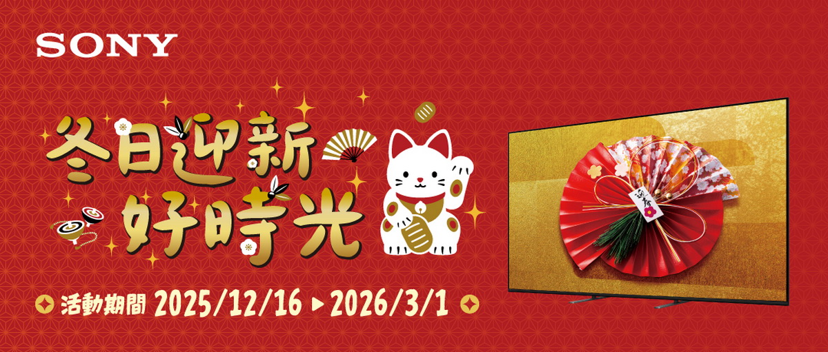 Sony 冬日迎新優惠活動自即日起至2026/3/1止,詳細活動訊息請參考活動網址https://event.sony.com.tw/2025/12/Winter/SP/,或洽詢全台Sony直營通路-Sony Store台北遠百信義直營店、Sony Store台北101直營店、Sony Store台北復興直營店、Sony Store台中直營店、Sony Store高雄直營店、Sony客服中心(02-4499111)及各大消費性電子產品通路。