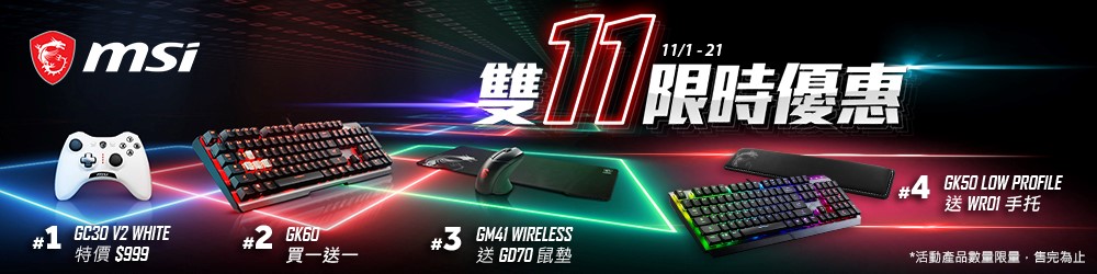 **更多雙11優惠內容請上https://tw.msi.com/Promotion/20221111 查詢(活動網址於11/1開啟)。
