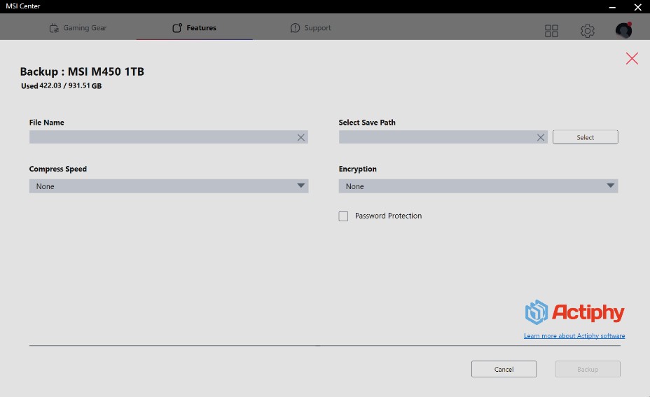 此外,MSI與世界領先的資料備份解決方案Actiphy合作,讓購買MSI SSD並將其安裝到PC系統的使用者能夠建立備份。如欲了解Actiphy Software或完整許可版本的更多資訊,請點擊連結了解更多。