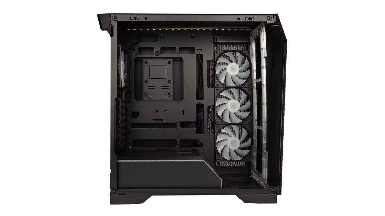 白色版本同樣支援背插主機板、360mm 水冷排與 10 顆風扇安裝,並內建六通道 ARGB 控制器,19 種燈效一鍵切換。機殼內部巧妙配置 SSD 安裝位與高速前置 I/O,包括 USB 3.2 Gen 2x2 Type-C,功能與美感兼具。