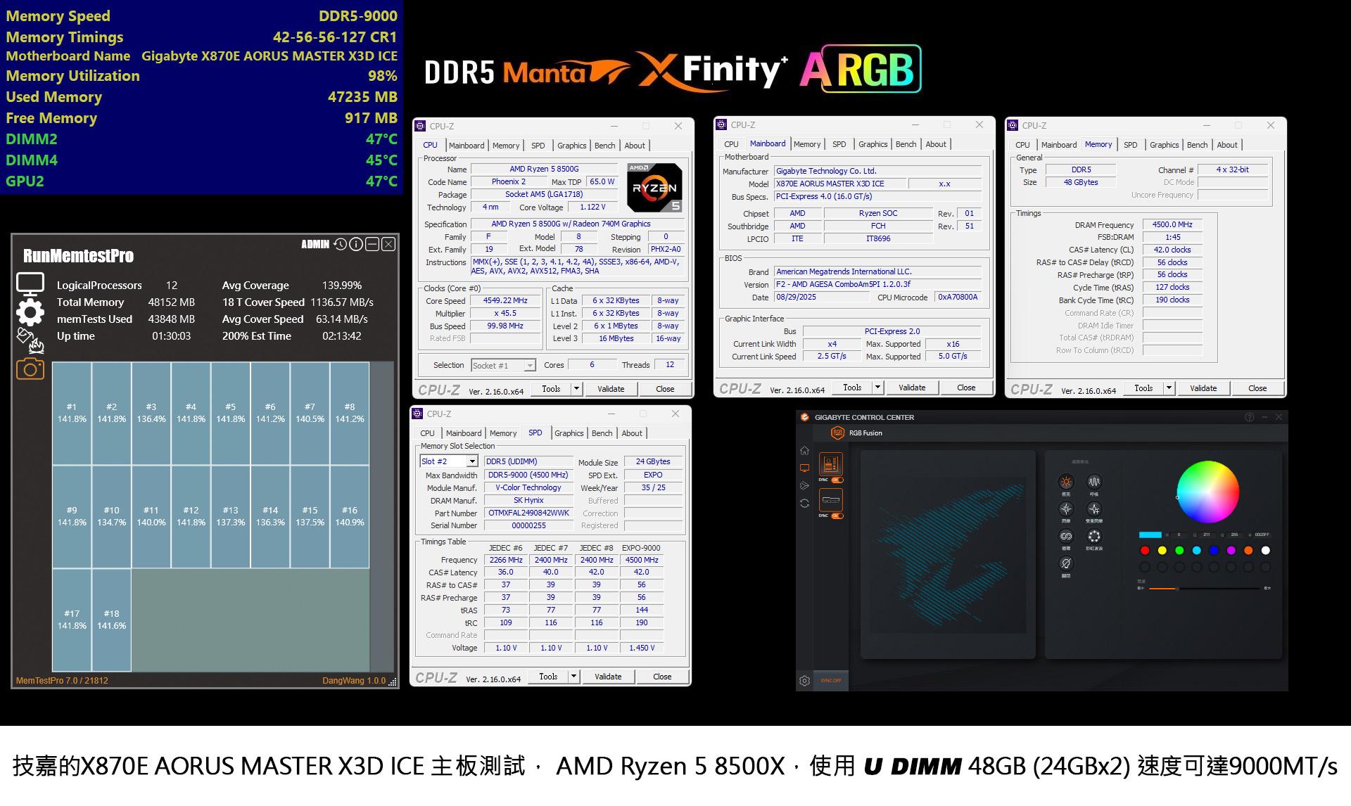 XFinity+ 記憶體模組已獲得專利 M664715的保護,並可於開機過程(POST)中即時顯示資訊,無需進入作業系統。對於超頻玩家、遊戲族群與DIY玩家而言,是一項強大的新工具。XFinity+ 還配備可獨立控燈效的ARGB,可呈現進階動畫、流暢的動態漸層,以及能隨系統狀態或自訂設定變化的沉浸式燈光模式。