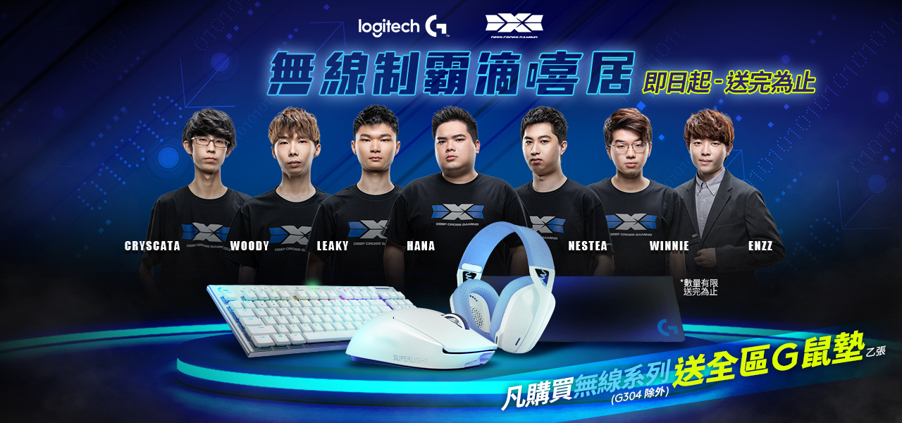 即日起購買Logitech G無線電競指定產品,即送Logitech G全區滑鼠墊,數量有限,送完為止。
