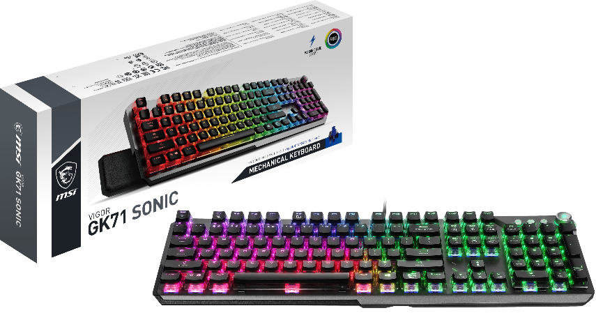 MSI宣布推出全新電競鍵盤–VIGOR GK71 SONIC青軸電競鍵盤。VIGOR GK71 SONIC電競鍵盤過往僅有紅軸,如今此系列將有了新的擴展,新增具有清脆敲擊感的青軸版本。MSI Sonic Blue採用世界上最輕的機械軸之一,讓玩家能夠以更快的反應時間和輕巧的按鍵在競賽中稱霸。VIGOR GK71 SONIC同時提供了一系列的全面性功能來增強遊戲體驗,包含用於生動的每鍵RGB 的MSI ClearCaps、智慧雙向音量調控、多媒體快捷控制鍵和人體工學記憶海綿手托,提供卓越的舒適體驗。