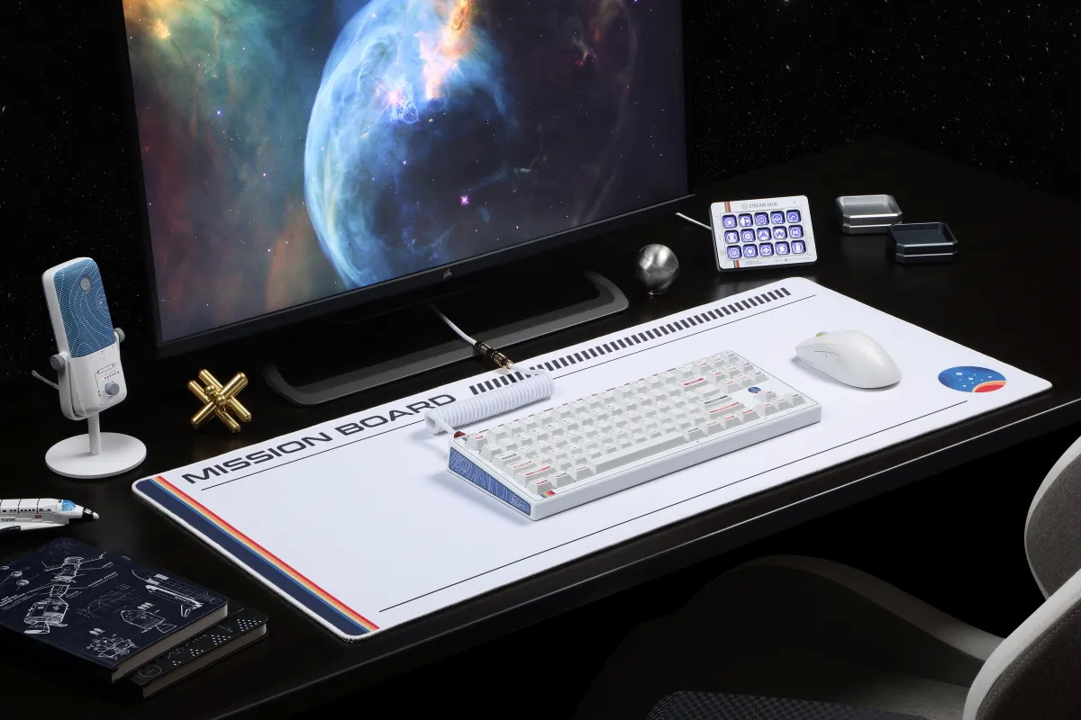 系列的核心是Drop + Starfield Constellation 鍵盤,這是一款受Starfield未來星際飛船駕駛艙控制裝置啟發的機械鍵盤。鍵帽經過精心設計,細節精緻,與遊戲中的介面和控制面板一模一樣,讓使用者每次按鍵都能感受到飛行員的體驗。結合 Drop 著名的機械鍵盤工藝,這款鍵盤不僅提供身臨其境的美感,還提供頂級性能。