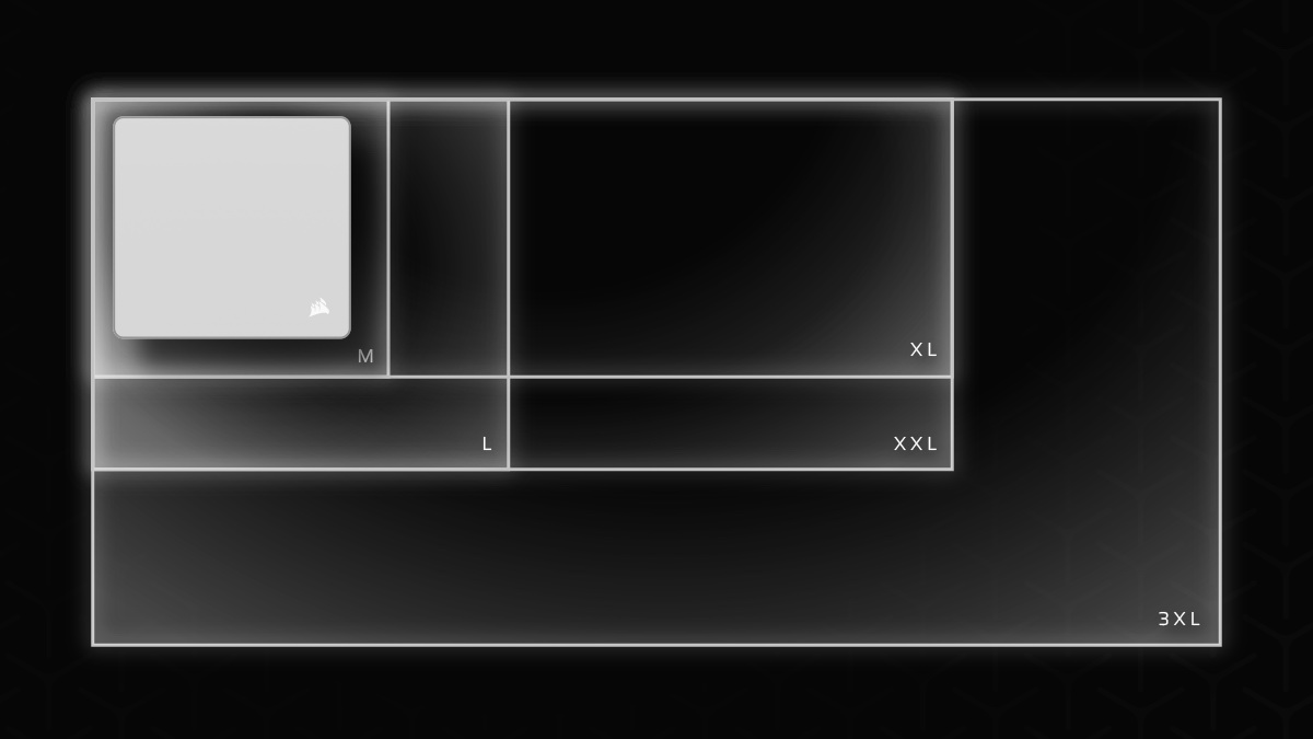 CORSAIR MM 系列遊戲滑鼠墊為每位玩家、每款遊戲、每種遊戲類型提供優質選擇。您可以先從MM 防磨損布面遊戲滑鼠墊入手,它尺寸齊全,適合各種桌面佈局,帶來均衡的使用體驗;之後,您可以選擇MM PRO Control 電競布面滑鼠墊,它能提供競技遊戲所需的精準操控、制動力和穩定性;最後,MM 玻璃大號精速器在最苛刻的遊戲墊能中實現最苛刻和快速甩動。