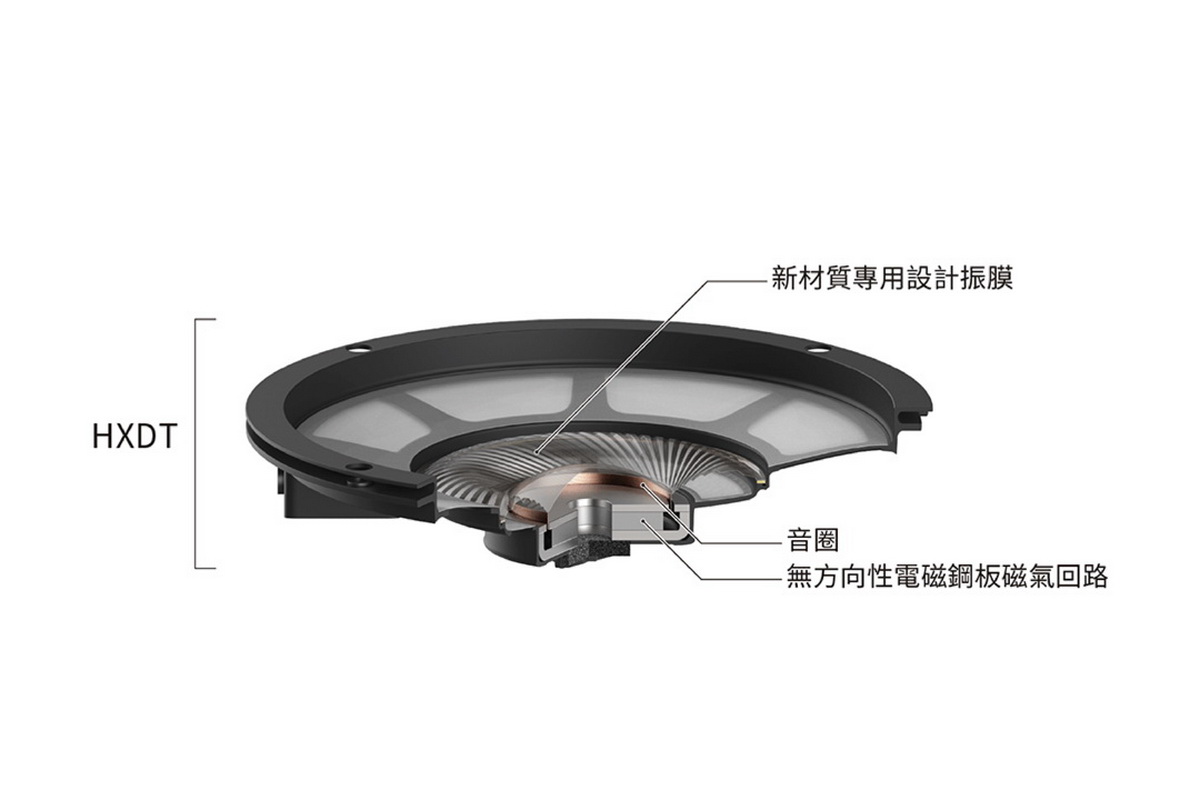在單體設計上,搭載全新 HXDT(Hi-Concentricity X Dynamic Transducer)技術,透過自家開發的精密成型技術,將障板、磁鐵、音圈與振膜配置於同一軸線上,達成比過往產 品高出 10 倍的組裝精度,實現精準的訊號傳遞與穩定的聲音重現力。同時,也將來自日本的 特殊技術——無方向性電磁鋼板,首次應用於耳機磁氣回路的結構中。提升電能轉換的整體 效率。有效抑制雜訊產生,使聲音的透明度更加突出。