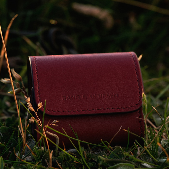 Bang & Olufsen 精心打造可供選配的高級柔軟皮革收納袋,完美貼合並包覆 Beo Grace 鋁製充電盒,推出三款顏色:暗夜黑、蔓越莓紅與貝殼沙。皮革收納袋設有隱蔽的 USB 充電口,配上優雅肩帶與精緻扣環,讓你輕鬆搭配,與音樂自在隨行。