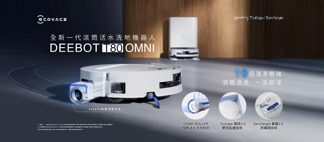 科沃斯秉持「讓機器人服務每個家庭」的品牌使命,致力於讓每一個家庭都能享有真正潔淨的生活體驗。2025年,首度將「恆壓滾筒活水洗地技術」運用至T系列產品線,以旗艦等級技術推出「T80 OMNI 全新一代滾筒活水洗地機器人」,主打「一滾即淨」的16倍清潔壓強與邊拖邊洗,打造中階市場高CP值首選,真正實現潔淨力全民升級,滿足消費者對產品的期待逐漸從功能堆疊轉向實際使用體驗,科沃斯聚焦於日常清潔中「越拖越髒」、「邊角遺漏」等真實痛點,滿足消費者在意的每個細節,T80 OMNI不只讓地板乾淨,也讓生活變得更純粹。