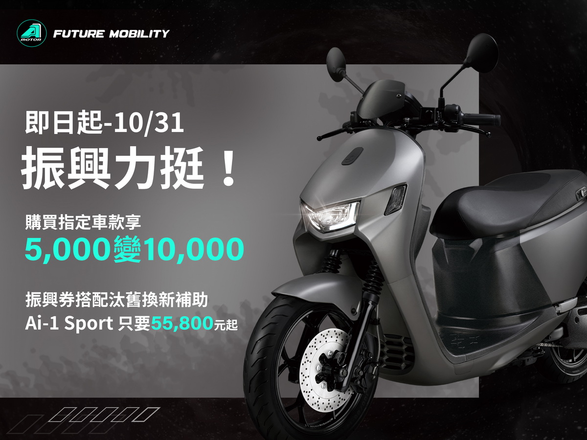 若結合政府汰舊換新補助(以南投縣為例),購買宏佳騰智慧電車最高可省下34,000元;若搭配地區加碼,如桃園市民搭配桃園市政府的振興加碼方案,10月8日至10月31日購車最高可省下36,000元!(包含振興券5,000元、桃園購置電車加碼補助7,000元、汰舊換新補助19,000元與宏佳騰振興五倍券加碼優惠5,000元)最低只要53,800元起(不含牌險)就能把最熱銷的Ai-1 Sport騎回家!