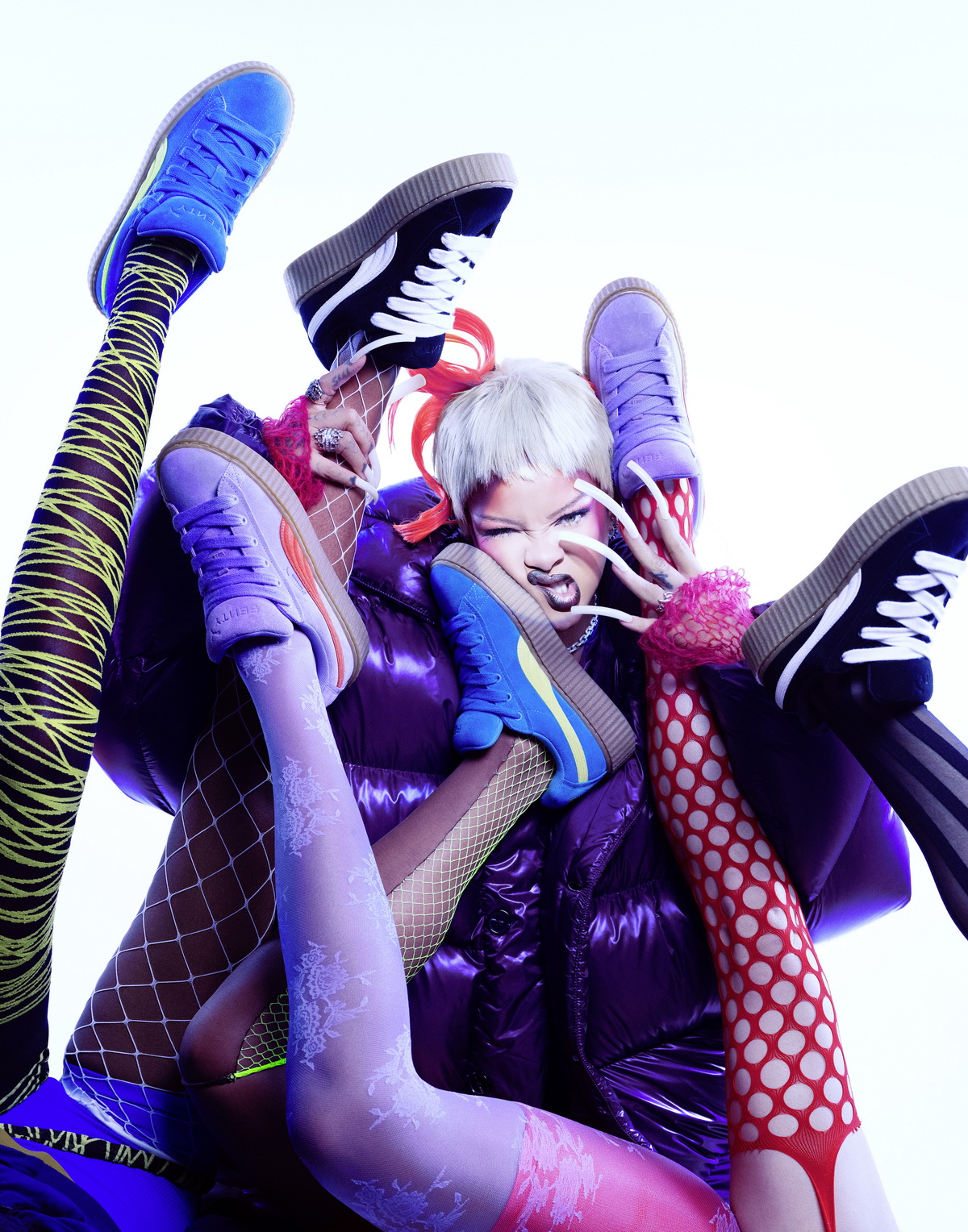 蕾哈娜今年重返 PUMA 擔任 FENTY x PUMA 創意總監,雙方以深耕多年的合作夥伴關係為能量,合作籌備推出多款產品,FENTY x PUMA 的回歸將 PUMA 深厚的運動傳奇歷史與 Rihanna 作為音樂、文化與時尚領袖的代表精神完美融合。9 月與 11 月陸續推出 FENTY x PUMA Avanti 四款配色,結合了 PUMA 足球鞋 King 的高品質皮革設計與傳統跑鞋 Easy Rider 的經典大底,超時空的前衛設計深受全球時尚圈青睞。今 PUMA 更驚喜宣布第三波 FENTY x PUMA:CREEPER PHATTY 厚底鬆糕鞋,以更大膽、更誇張的外型重磅回歸人氣爆款,將於 12 月 1 日正式登台發售,祭出經典黑、藍綠嫩黃、及嫣紫暗紅三款新色,霸氣宣示時尚教主蕾哈娜再度主宰運動時尚圈新世代。