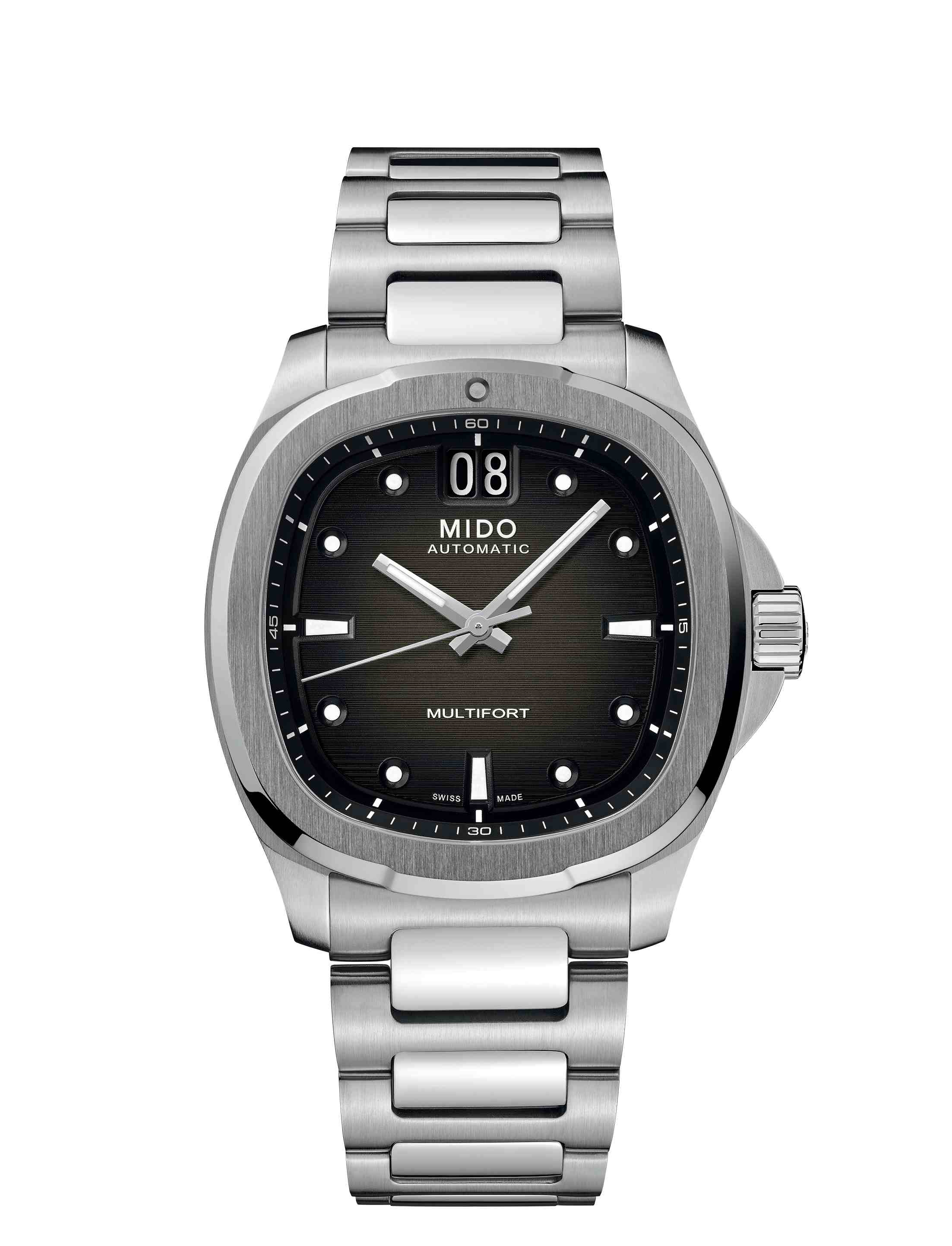 他在城市中節奏分明、動靜之間自有章法。Multifort TV Big Date 黑色款以經典電視機形錶殼結合由灰至黑的漸層錶盤,復刻1970年代美學,展現復古與現代的完美銜接。12點鐘位置設有大型日曆窗,如城市燈箱般一目了然,兼顧效率與設計感。搭載Caliber 80自動上鍊機芯與Nivachron™鈦游絲,擁有長達80小時動力儲存與出色防磁抗震性能。精鋼材質錶帶與雙面防眩藍寶石水晶鏡面,呈現現代都會男性從容不迫的生活節奏與細節講究。