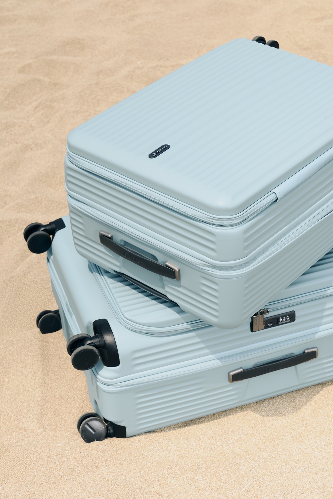 「Coastal Chic」強調自然、寬鬆與高質感,將對度假旅行的嚮往融入 穿搭風格之中,搭配棉麻材質、低彩度色系與簡約線條,展現一種從容 愜意、優雅隨心的生活態度。而另一股席捲全球的「Quiet Luxury(低 調奢華)」趨勢則更強調質地與品味,以內斂無聲的設計語彙,表現不 張揚卻高端的時尚感受。萬國通路eminent 正是洞察這兩大趨勢的交 集,將這抹令人心曠神怡的藍色注入熱銷款 KK50-2 系列旅行箱中,打 造出一款專為夏季旅行而生的時尚行李箱——讓旅人不只擁有好用的收納工具,更擁有一件能與穿搭互相呼應的時尚單品。
