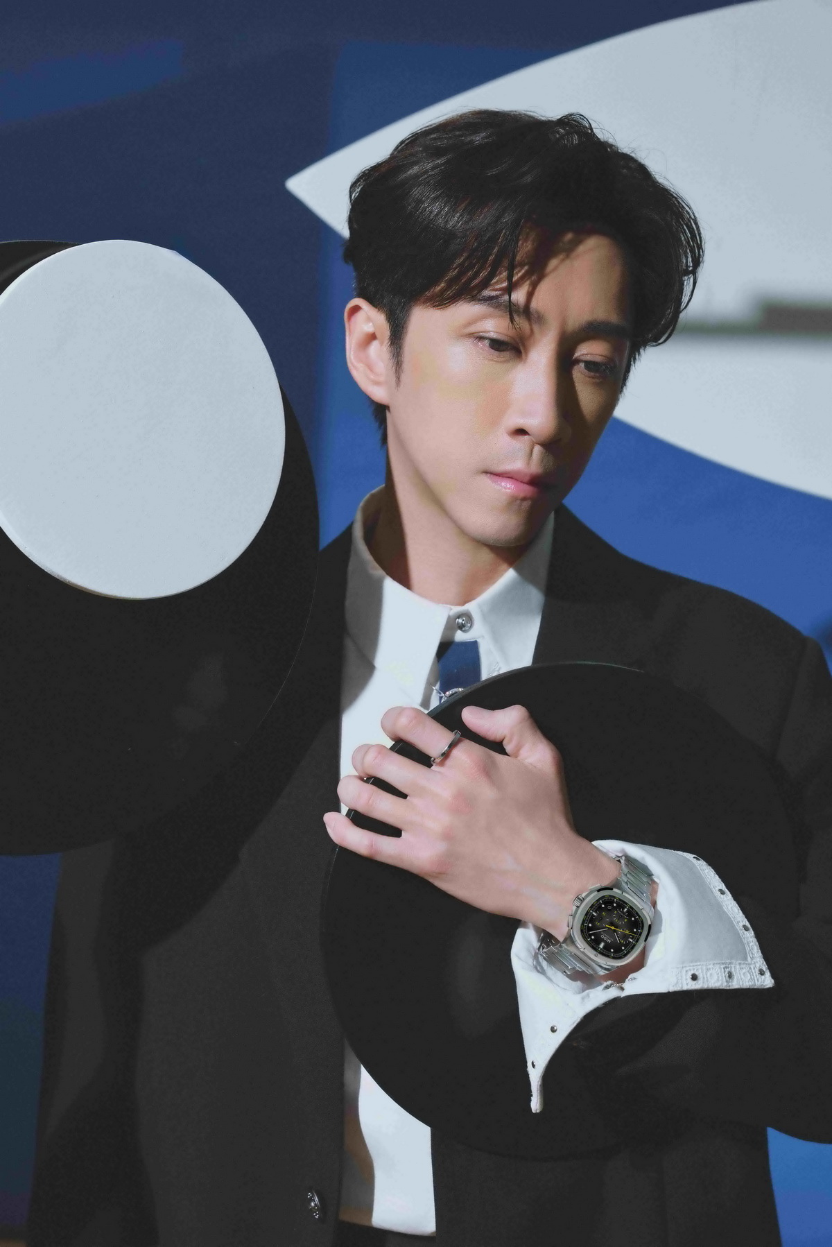 紅毯上,陳漢典以秋冬系列深灰色西裝亮相,MIDO腕表灰黑漸層錶盤展現深邃層次,亮黃色指針也回應了今年金鐘 60 螢光黃的主色調,在細節中低調展現對典禮主題的用心。看似規矩的正裝則蘊藏設計亮點,褲裝採一邊百褶一邊筆直的不對稱剪裁,沉穩氣勢中帶點玩心,正好符合他內斂又帶幽默的特質;內搭鉚釘刺繡的白襯衫,俐落剪裁中隱藏精緻心思,身上的珠寶配飾象徵愛的無限可能與恆久守護,而手上的 MIDO 腕錶則以時間見證他此刻的幸福。在別具意義的金鐘盛典上,陳漢典以造型含蓄地展現愛意,是最浪漫的宣告,可見他此刻甜蜜的狀態,整體巧妙的搭配,使他更添魅力。