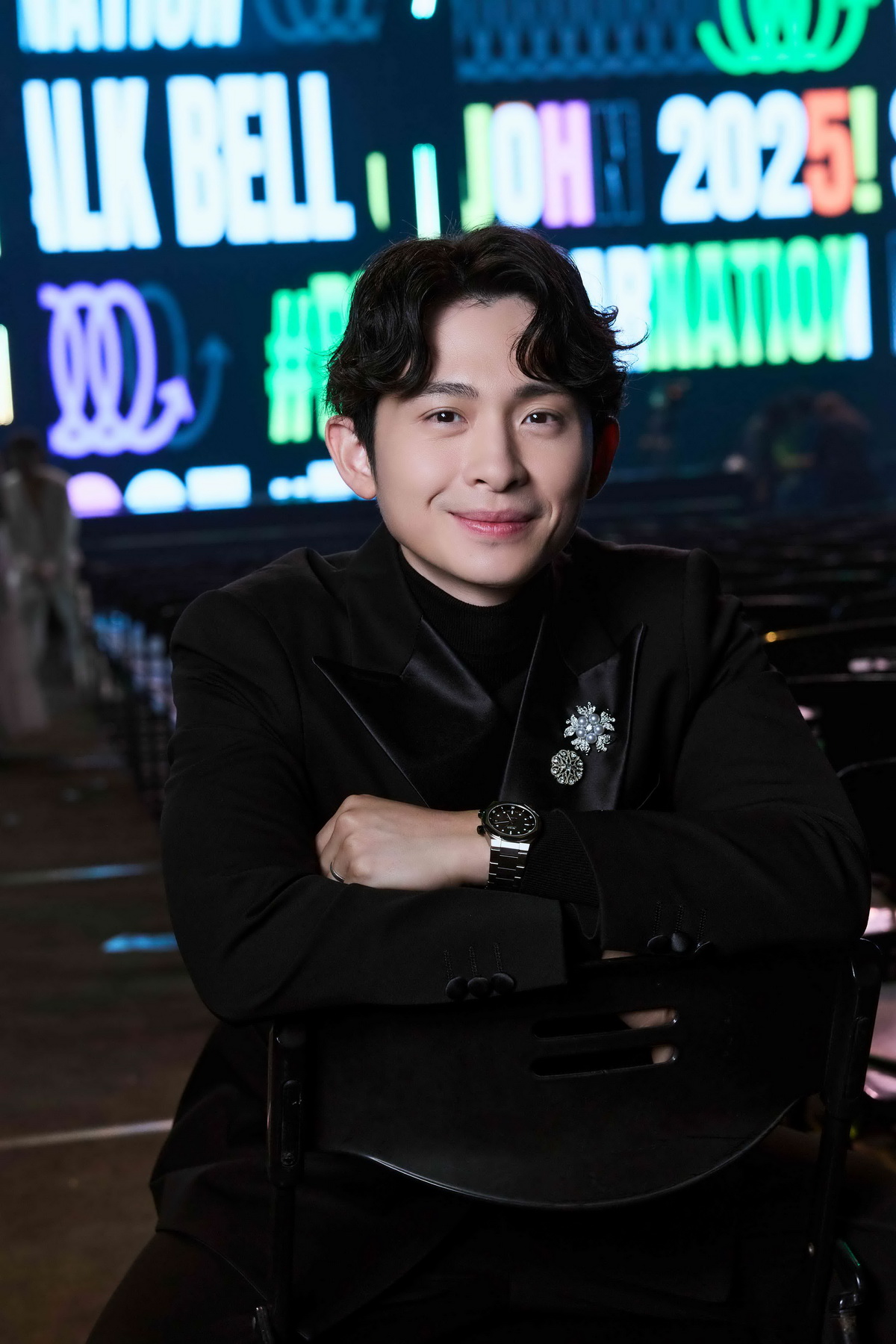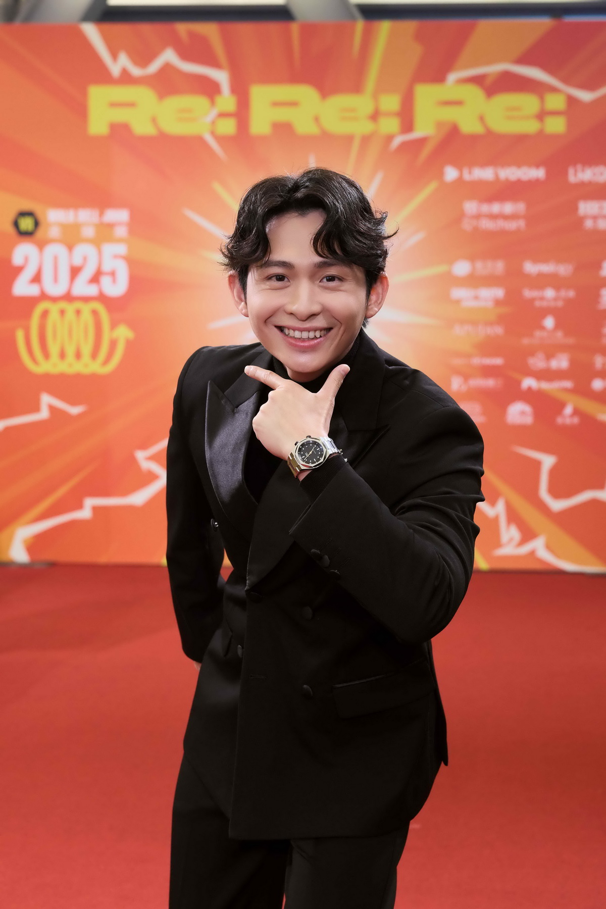 今年典禮的主題是「轉生」,許多 YouTuber 裝扮大膽華麗,博恩則以沉穩造型回應主題。黑色雙排扣禮服西裝,搭配幾何層次感的胸針,與手腕上的八角形狀的 Multifort 8 Two Crowns 啞光黑腕錶形成細節呼應。他過去以鋒利幽默受關注,近年持續投入深度訪談,10月以喜劇專場「奧德修斯 Odysseus」回歸大舞台。多領域中呈現不同的強度,這次的造型相當貼近他現在的狀態,低調又帶有豐沛的能量。
