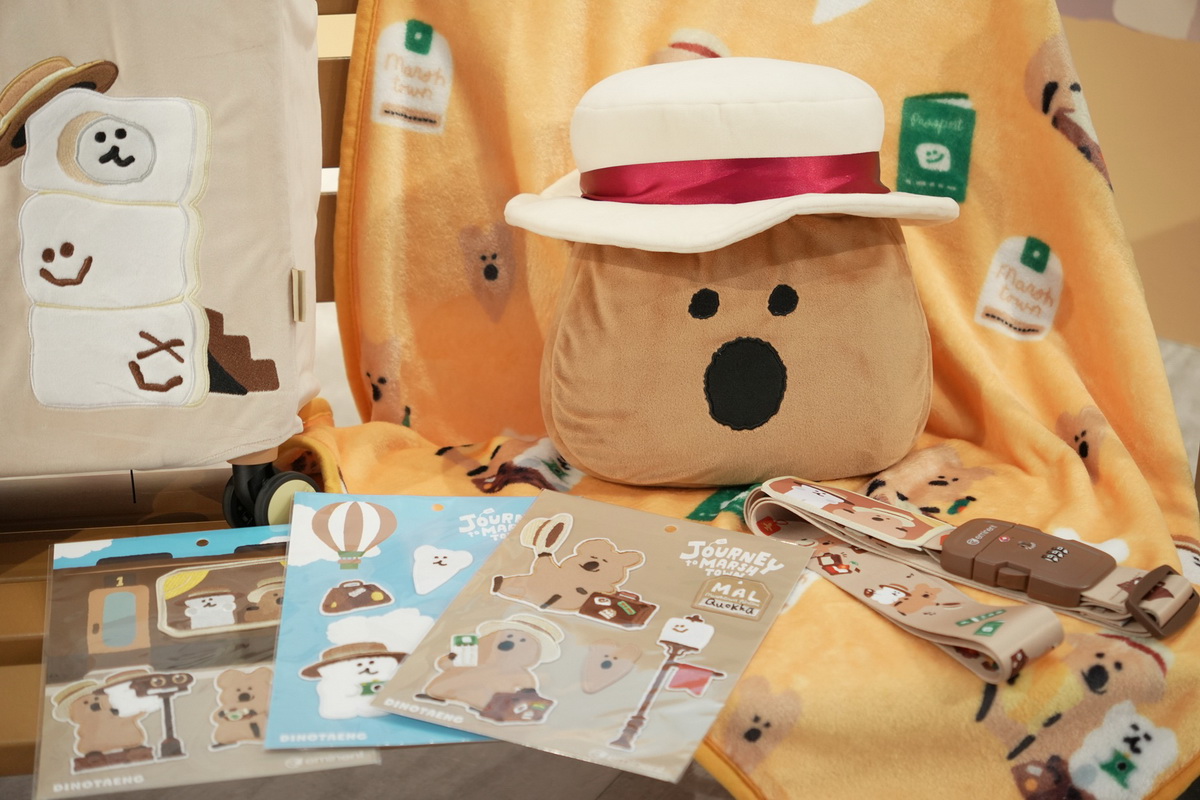 短尾矮袋鼠商品又一波!行李箱品牌萬國通路 eminent 攜手超人氣韓國插畫 IP「DINOTAENG」,今 年秋天準備開啟療癒旅程!本次以「最佳療癒夥伴」為核心的旅遊主題系列商品,包含行李箱、行李束 帶、兩用抱枕毯、刺繡貼紙等多種旅行配件,古靈精怪的 QUOKKA 和小可愛 BOBO 也準備陪伴旅人 從打包到歸途每一個時刻,帶來秋日最溫暖的旅行體驗。整體設計風格溫和可愛搭配絨毛材質,兼具實 用與童趣風格,讓旅行時光更加暖心和歡樂。本次合作商品也同步於萬國通路創意觀光工廠館內的沉浸 式空間快閃區展出,除了可以與 IP 角色拍照打卡,和角色們一起探尋「世界上最好吃的棉花糖」的蹤 跡,也能於現場參觀及選購合作商品。