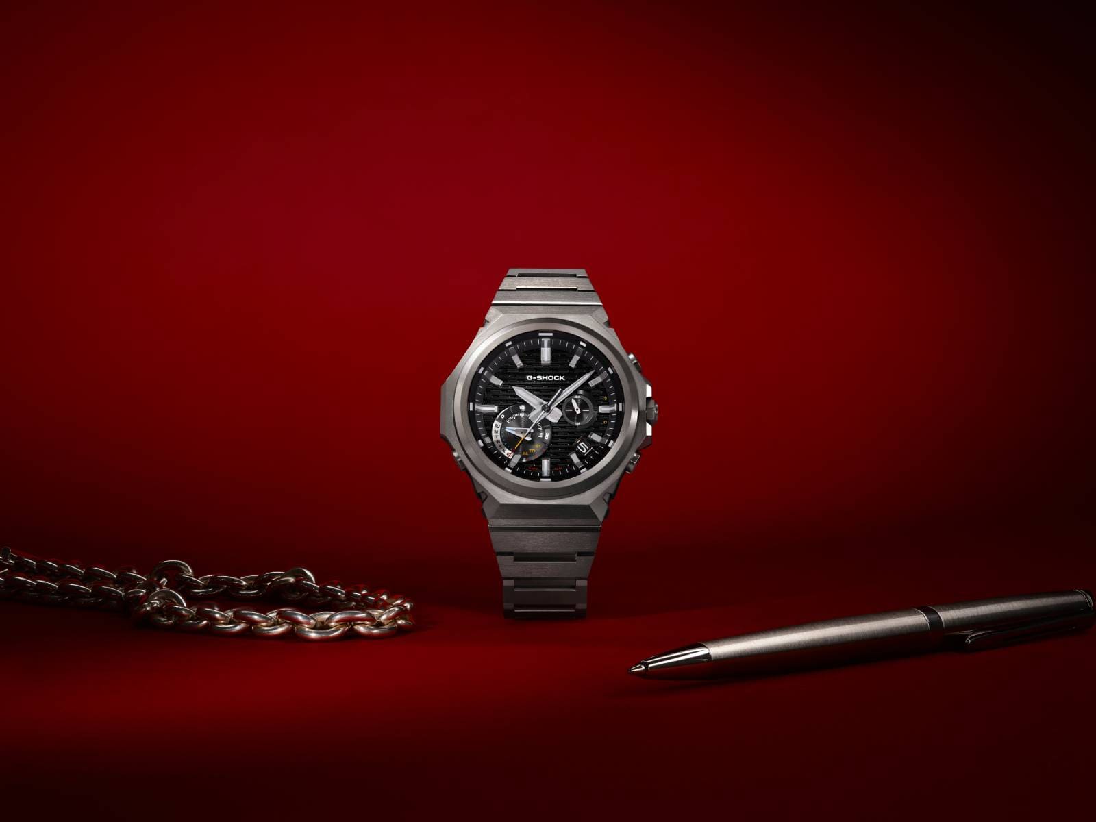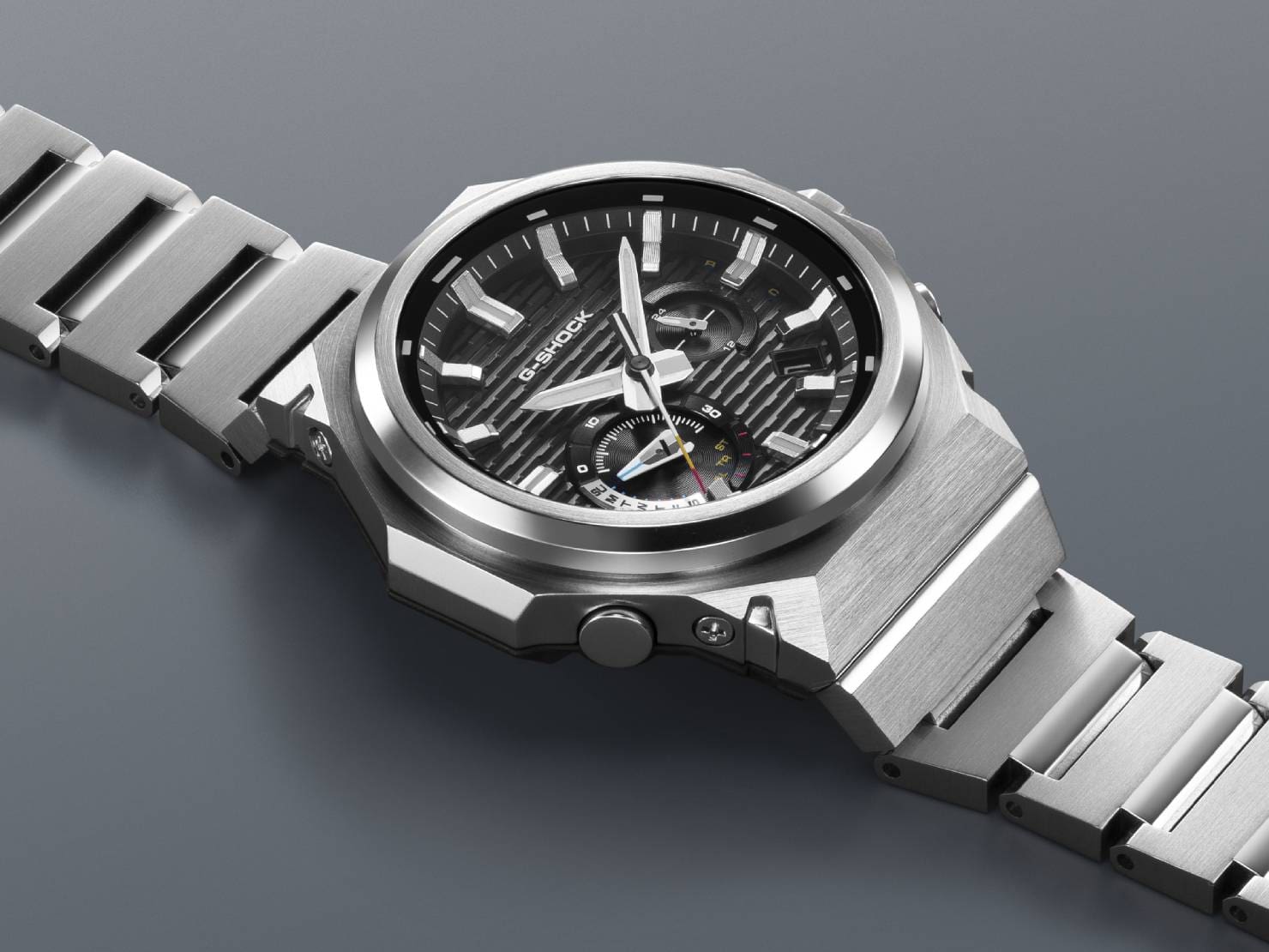 本次新作以更俐落的金屬線條與現代比例,呈現不失G-SHOCK風格的減法美學。錶圈不同於以往具份量感的造型,而是採用一體式的俐落八角結合渾圓造型的金屬錶圈,並運用垂直髮絲紋、環狀髮絲紋與鏡面拋光三種工法,呈現層次豐富、隨光線變化的金屬質感。相同的拋光細節亦運用於不鏽鋼錶帶與三折式錶扣設計,錶圈同時抹去過往常見的品牌標誌與功能符號,錶盤也改以簡約的三針搭配兩個功能子盤呈現,使GST-B1000與以往強調強悍、粗獷的經典設計相比,以更簡約精緻、都會休閒的嶄新風格重塑品牌精神。其中GST-B1000D-1A更是在錶盤融入G-SHOCK 初代型號DW-5000C的標誌性元素,包括重現經典磚紋的黑色錶盤,並以象徵品牌DNA的紅、藍、黃細節點綴,呼應G-SHOCK的原創設計風格,紅色代表勇於挑戰的熱情;藍色象徵優異的防水性能;黃色則表示耐衝擊性能優異。