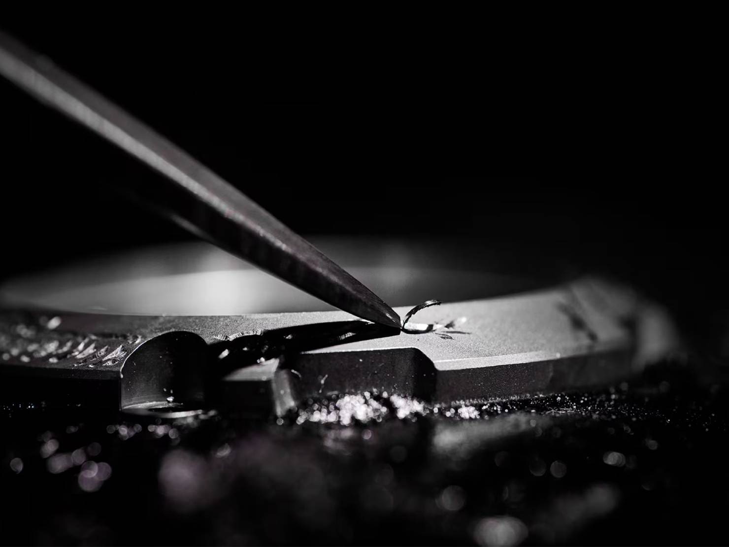 錶殼重現日本刀劍上的「沸」結晶紋理並經過深層硬化與棕色AIP塗層處理