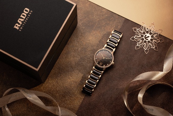 年末的光不一定要喧嘩,有些質感只要角度一轉就會被看見。此款以品牌獨有的電漿高科技陶瓷打造錶殼與鍊帶,呈現介於金屬與高科技陶瓷之間的溫潤光澤,線條俐落卻不冷硬。方形錶殼搭配藍寶石水晶鏡面,使輪廓更乾淨通透。錶盤運用特殊電鑄工藝複製鑽石粉末的晶體結構,形成細緻的金屬紋理質感,並以黃金色立體時標與同色錨型標誌提亮層次。黃金色指針覆以白色 Super-LumiNova®,在不同光線下依然清晰易讀。腕錶搭載 Rado R734 自動上鍊機芯,具備 80 小時動力儲存、Nivachron™ 防磁游絲並通過五方位調校,讓外在的閃耀與內在的穩定同時到位。