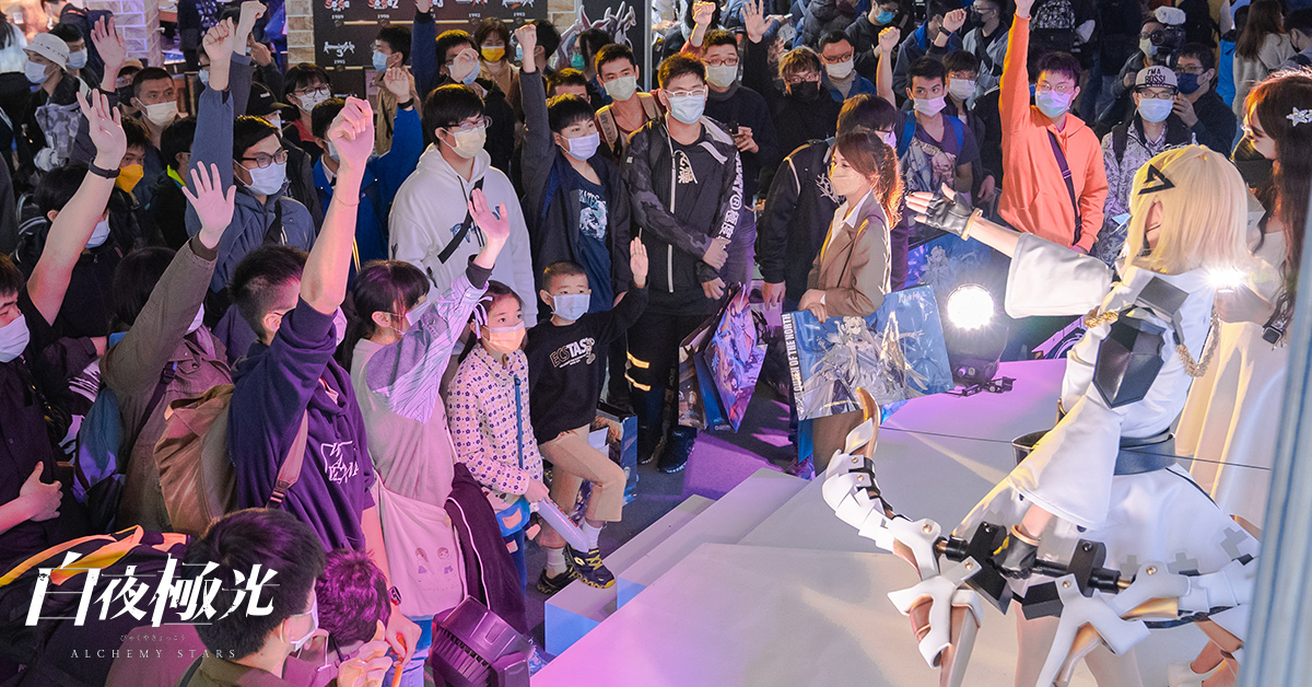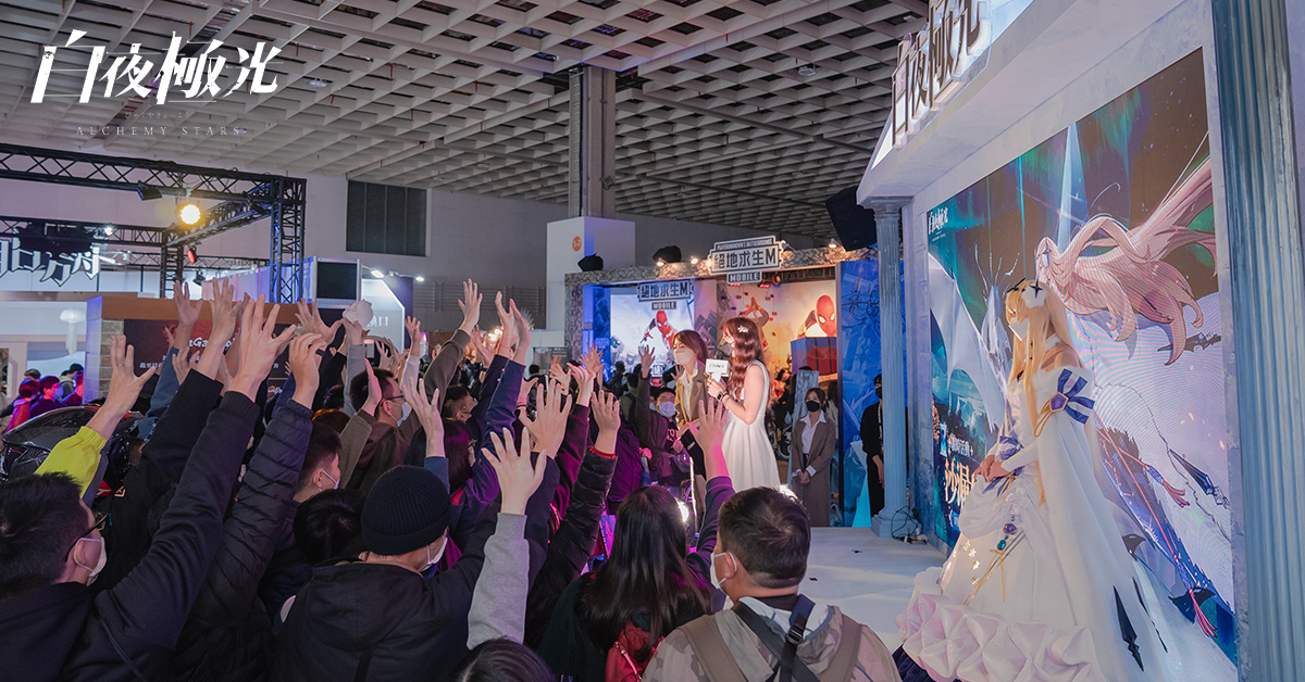 《白夜極光》於2022台北國際電玩展與玩家們見面,特地將舞台打造成北境場景,並邀請知名COSER裝扮成新角色北境女王「伯利恆」及最受歡迎的角色「薇絲」於活動中華麗登場,與現場玩家們進行互動,除了遊戲問答,還有刺激的遊戲關卡PK及有趣的小遊戲,送出人型抱枕、人型立牌、杯墊、明信片套組、鑰匙圈等精美周邊,一天6場的舞台活動,吸引大批玩家熱情參與。此外,玩家們至試玩區體驗遊戲魅力後也可獲得限量胸章,而在展期期間,每日都有早鳥禮,前30名的玩家可獲得10萬白夜幣及人型抱枕,前31-50名可獲得10萬白夜幣。海量的贈品及福利,讓玩家盡興並滿載而歸!