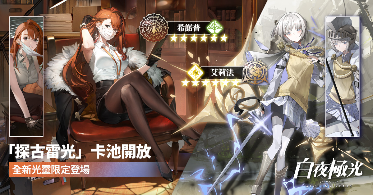 《白夜極光》全新角色「希諾普」及「艾莉法」專屬的「探古雷光」卡池