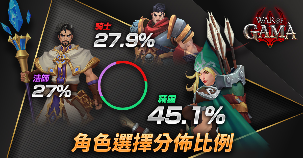 《War Of GAMA》於日前舉辦全球限量的封閉測試活動(CBT)已圓滿落幕,全球玩家們熱情參與,短短一周創下近三萬人次參與,玩家以台灣及大陸、美國、韓國、日本地區居 多約佔60%,東南亞各地區也有眾多玩家參與,次日留存率高達42.7%,三日留存突破34.7%,可見玩家們對於《War Of GAMA》相當的喜愛。