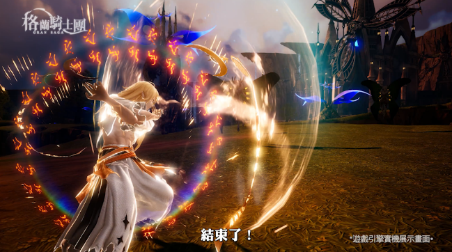 影片截圖:《Gran Saga:格蘭騎士團》光屬性角色「奧爾塔」技能展示戰鬥畫面。
