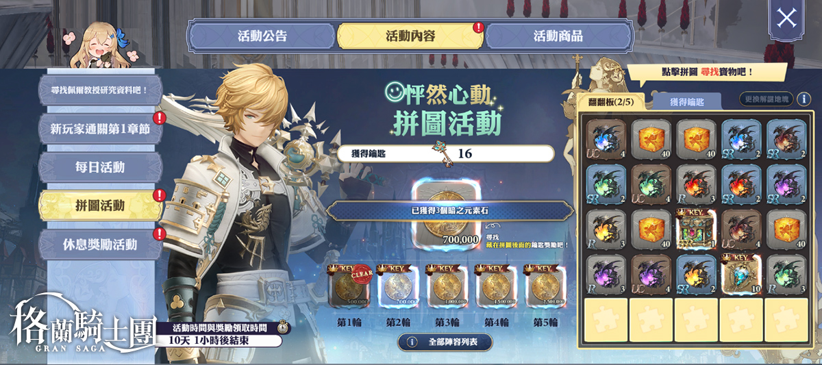 《Gran Saga:格蘭騎士團》怦然心動拼圖活動,完成指定任務可獲得對應豐富獎勵。