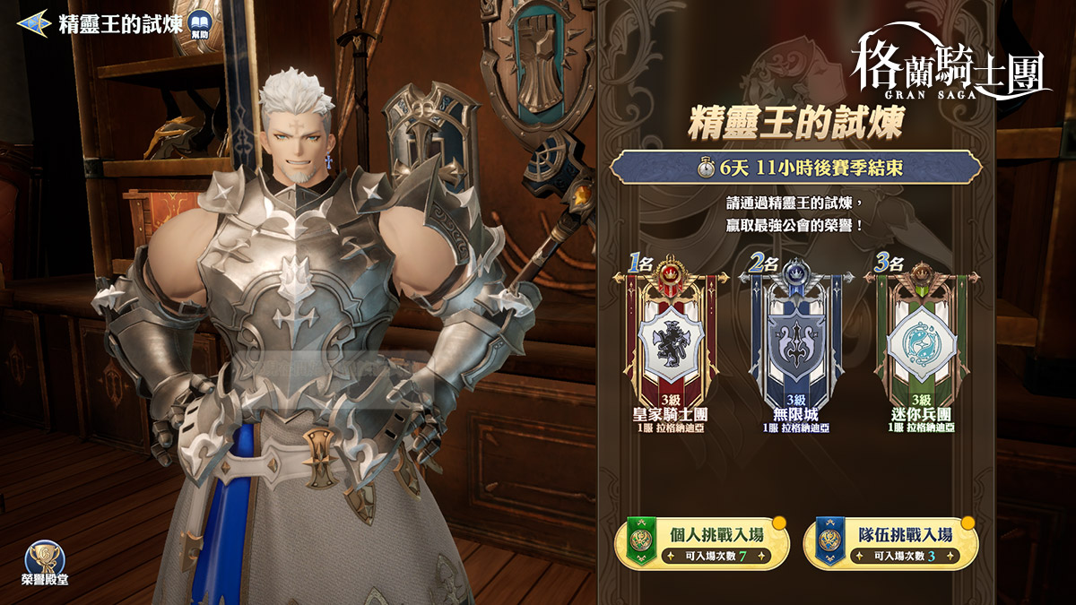 《Gran Saga:格蘭騎士團》公會戰新賽季啟動,本次限時開啟精靈王的試煉(風)。