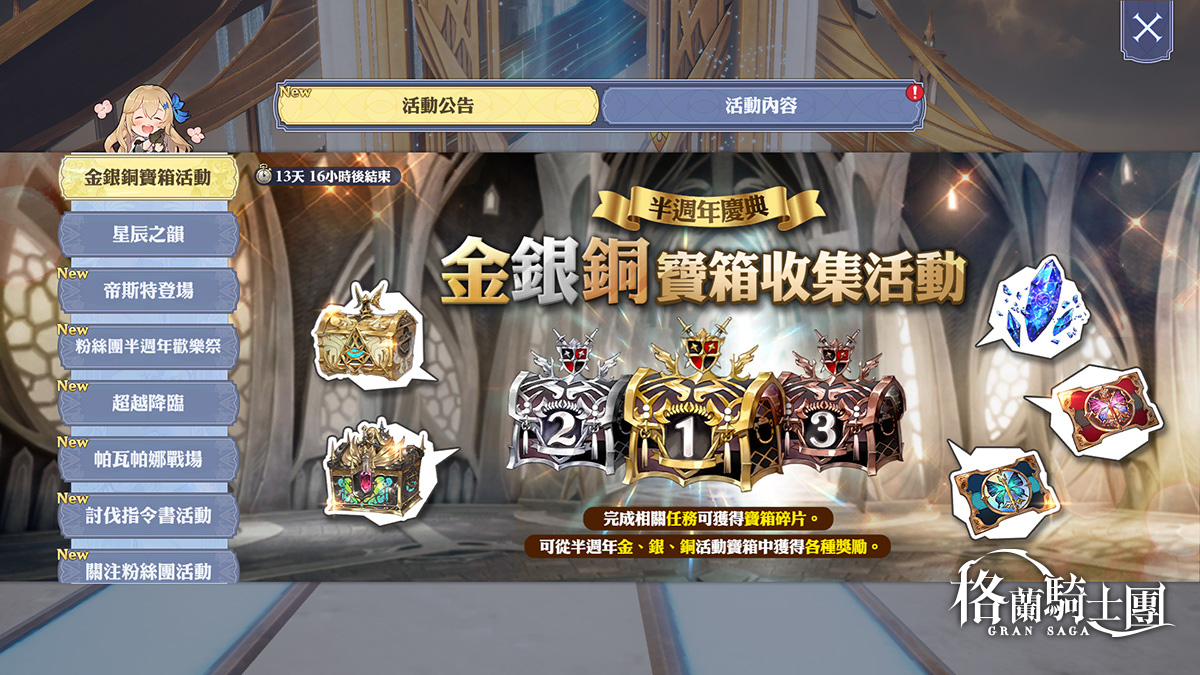 首款3A Lite大世界卡牌RPG《Gran Saga:格蘭騎士團》於今(1)日迎來半週年,一系列活動也同步開跑,只要參與活動就能夠獲得豐富好禮,為了慶祝半週年慶,營運團隊也特別推出特別簽到活動,只要在活動期間內登入簽到即可獲得包含SSR神器自選寶箱在內的各種好禮,除此之外全新的格蘭武器以及神器也將於本次半週年活動中同步開放。