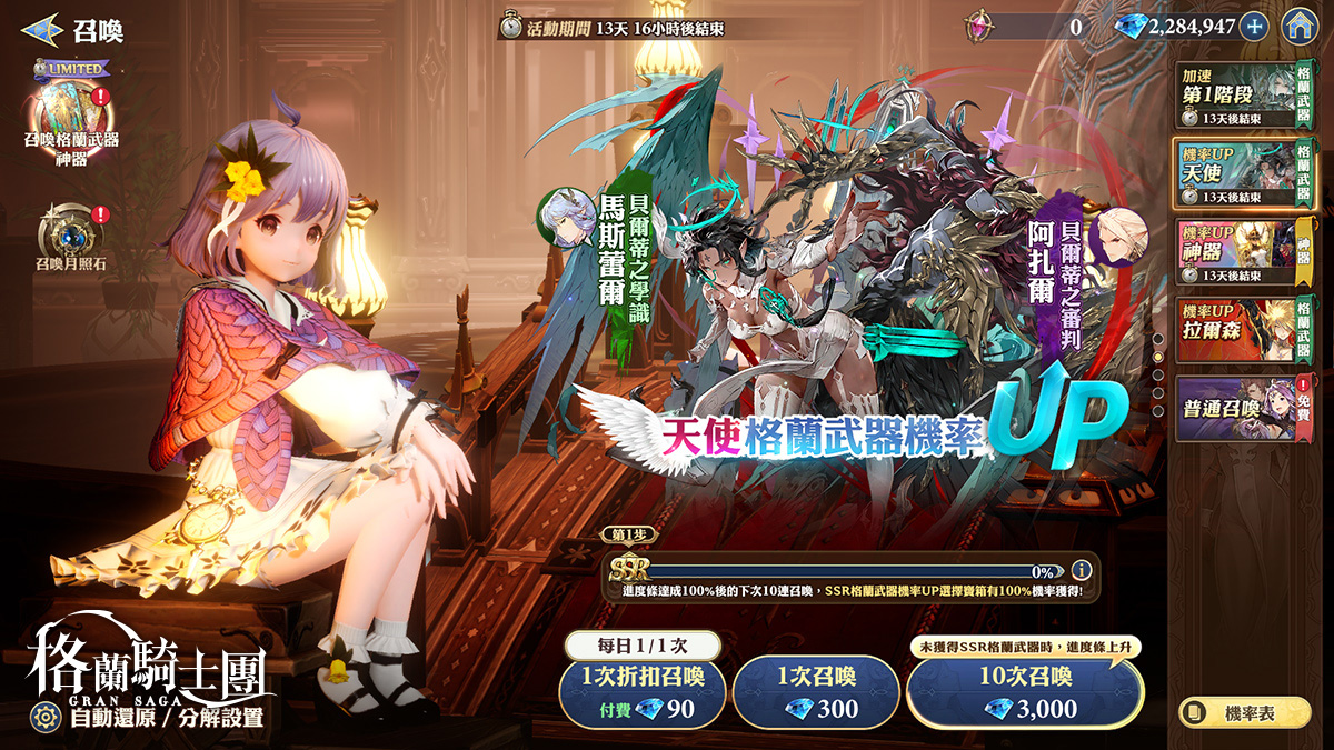 全新天使系列格蘭武器登場,UP卡池同步釋出
