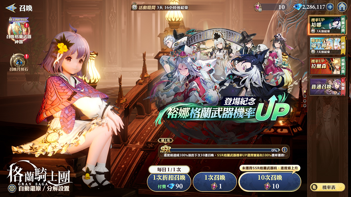 「裕娜」專屬格蘭武器登場紀念UP卡池同步釋出
