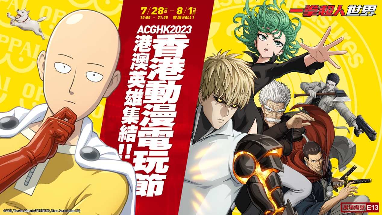 《一拳超人:世界》香港營運團隊宣佈將首度於香港動漫電玩節(ACGHK2023)【E13攤位】登場。本次展會將從2023年7月28日(五)至8月1日(一)於香港會議展覽中心舉辦,玩家將有機會在香港首次實機試玩《一拳超人:世界》。香港營運團隊特別邀請香港知名KOL「達哥」及「加蔥」出席挑戰刺激副本,同時也將贈送限定埼玉涼扇、《一拳超人:世界》提袋及其他精緻周邊等禮品。