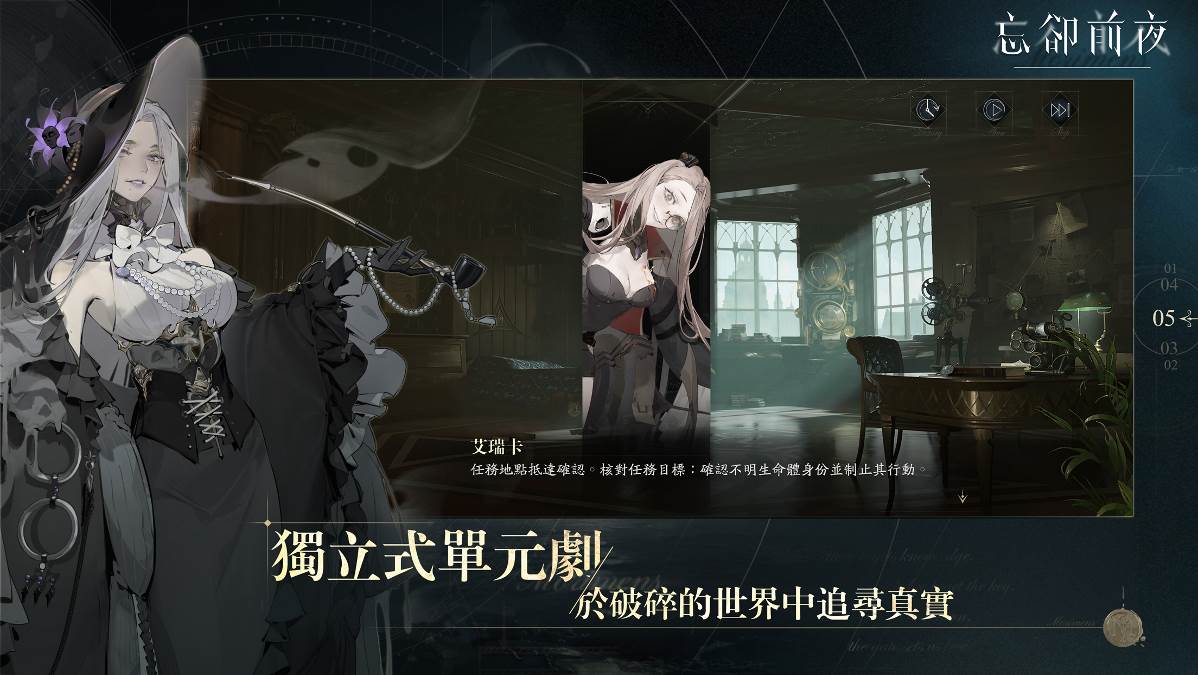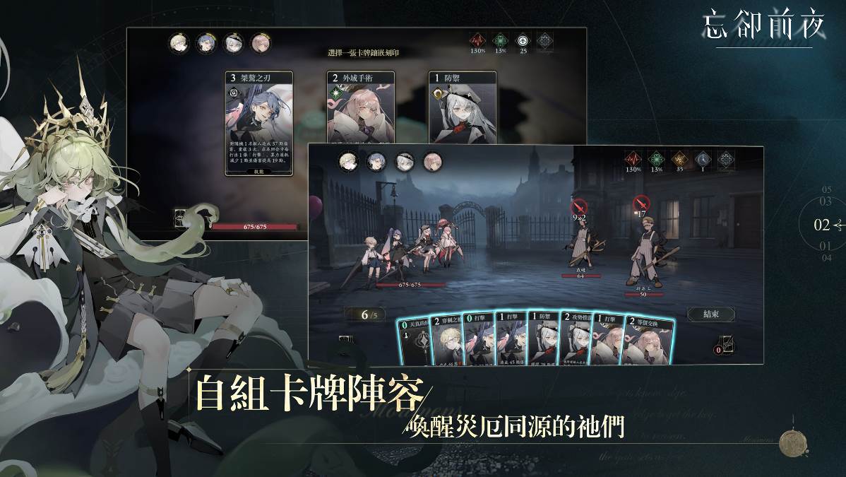 《忘卻前夜》是一款將經典克蘇魯題材結合精緻新銳的二次元畫風,塑造「又克又美」的Roguelite禁忌卡牌構築手遊,遊戲內的每一位角色都有獨特的技能卡以及不同的界域特性可以發揮,玩家可以依照自己的喜好選擇四位角色組建成隊伍,每位角色都有四種行動卡可以使用,這些行動卡在挑戰關卡時會構築成行動牌組,與玩家一同並肩作戰。
