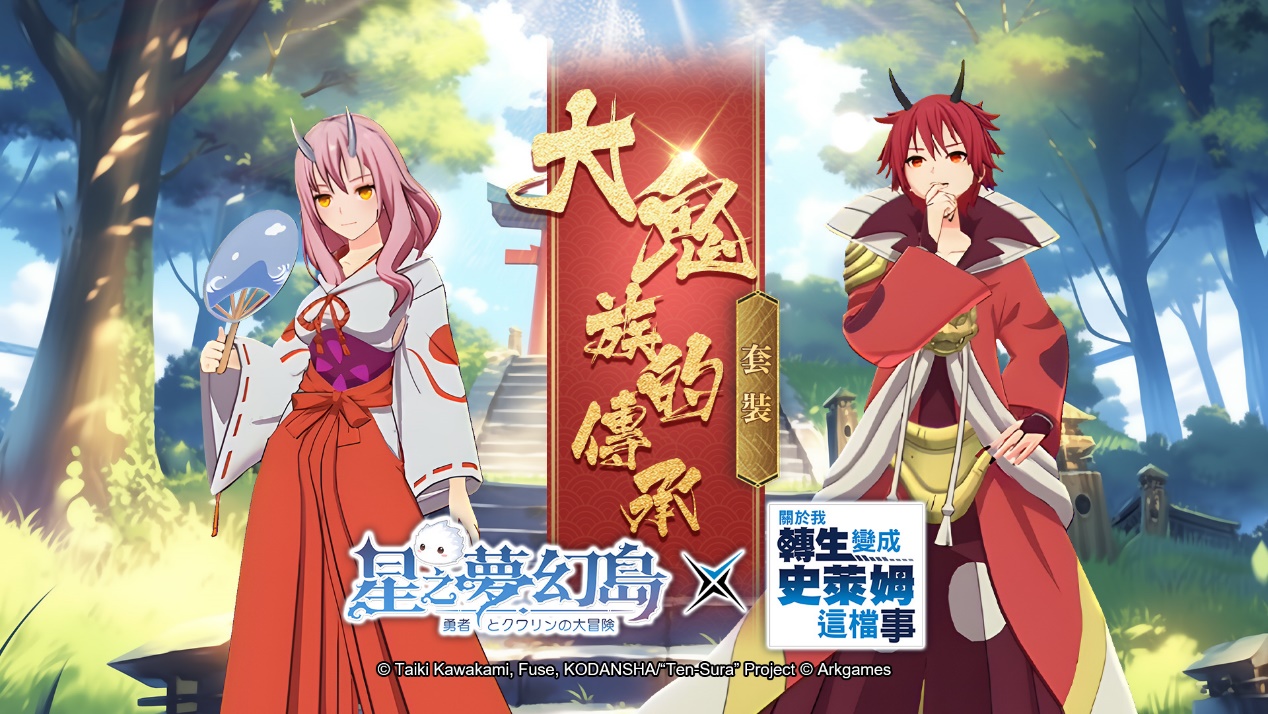 蘭加不再只是利姆路的專屬坐騎,現在所有玩家都有機會擁有,一同征服《星之夢幻島》的每個角落!更令人期待的是,聯動活動中推出的「朱菜」、「紅丸」的日系經典套裝。現在,你不僅能與可愛的動漫角色同行,還能穿上這些經典套裝,精心設計的聯動內容,讓你能夠同時穿梭於《星之夢幻島》與《關於我轉生變成史萊姆這檔事》的世界,感受動漫中的冒險氛圍。