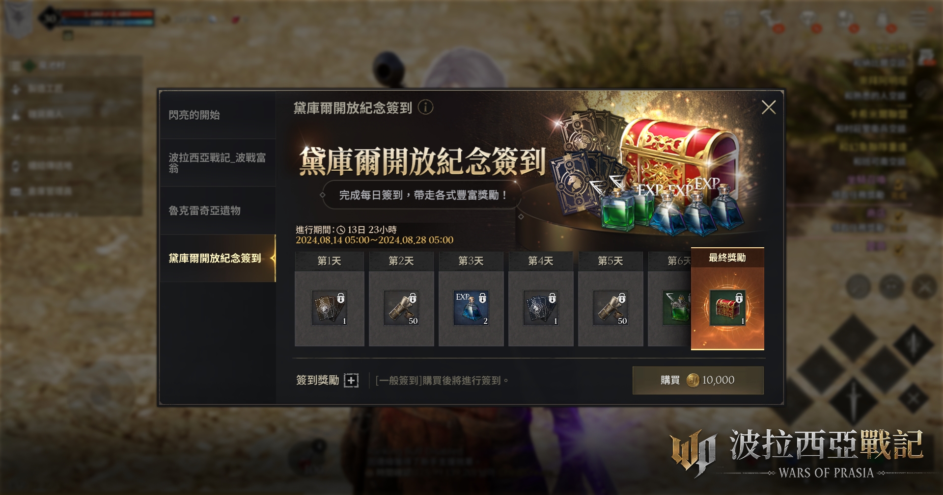 (圖片四)《波拉西亞戰記》黛庫爾開放紀念免費簽到活動,期間登入七日並完成簽到即可獲得獎勵