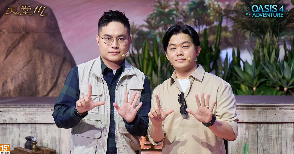 (圖片二)《天堂M》韓國NCSOFT遊戲企劃總監趙在敬(圖右)跨海來台參與直播,更加碼送出「開發團隊特殊禮物」;圖左為遊戲橘子營運事業處副處長周仕韜