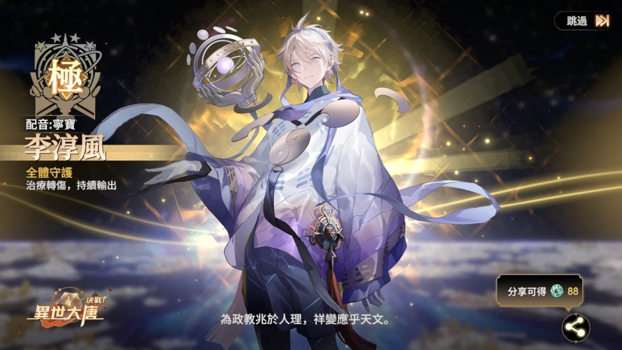 自幼聰慧過人,精通天文曆算的李淳風,歷經朝堂與欽天監歷練,被譽為「欽天雙珠」之一。此次以全新援護型衍靈之姿登場,將為隊伍帶來逆轉生機的強大支援。