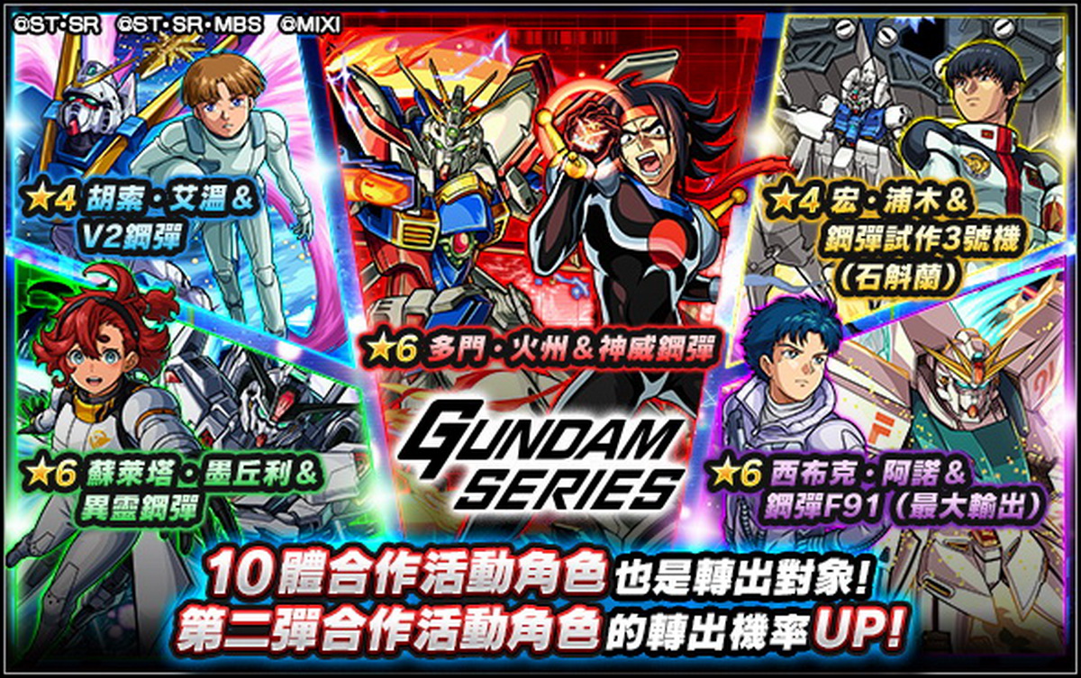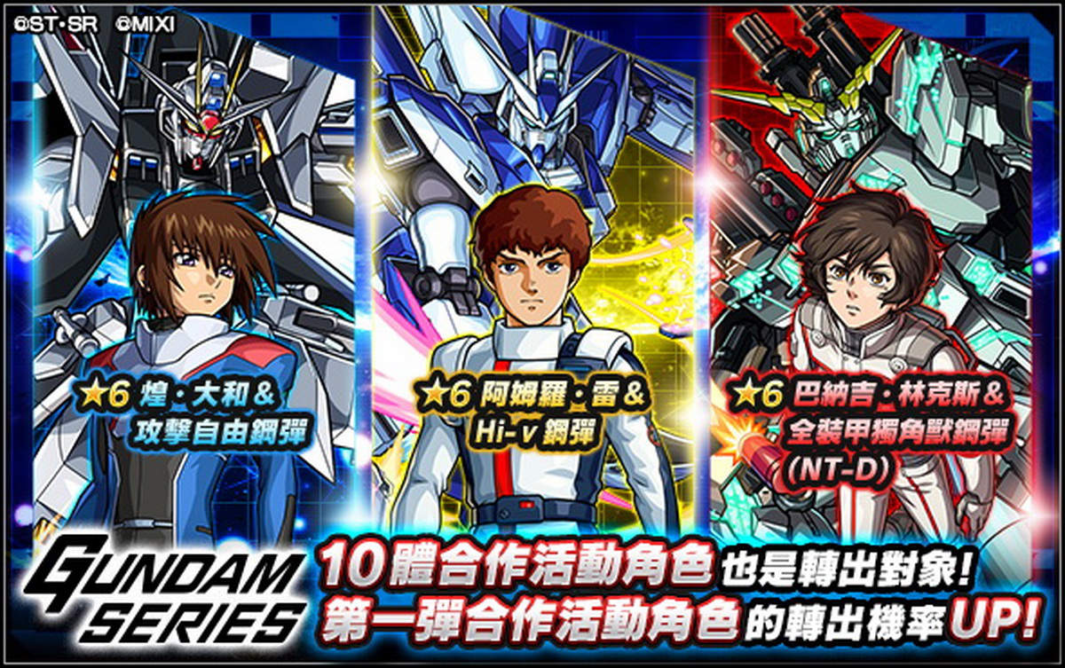 水屬性 ★6 天手讓葉(瑪秋)&GQuuuuuuX (獸神化) | 闇屬性 ★6 涅安&GFreD (獸神化) | 火屬性 ★6 修司伊藤&紅色鋼彈 (獸神化) |