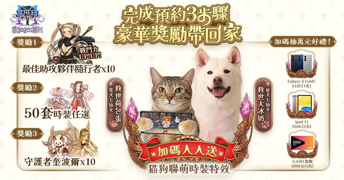 圖(三)官網推出事前預約加碼活動,完成三步驟送代言人專屬貓狗聯萌時裝特效、再抽萬元好禮