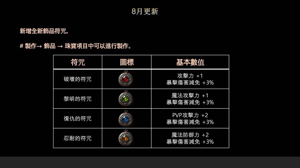 此外,為了強化天選者的戰鬥力,也同步擴充了「特性系統」與新增道具。特性等級上限從80擴展至100級,並新增全新寶石道具「符咒」,使角色的成長幅度更大。