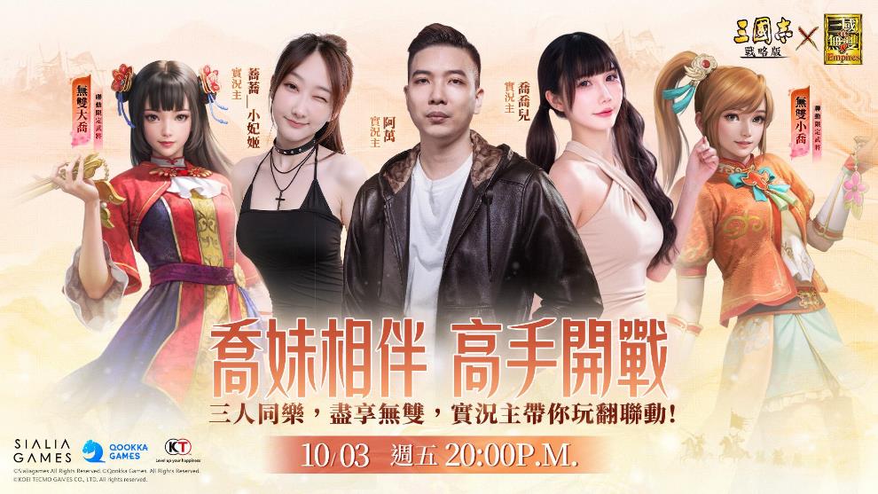 10 月 3 日起聯動活動全面展開,登入參與活動就能免費迎回「無雙小喬」,並把握良機集結心儀的無雙女將。江東姐妹花已踏上戰場,下一步,就等主公親自加入,共同開啟這場屬於「絕色二喬」的策略新篇章,共征策略黃金新時代!更多活動詳情請務必關注官方粉絲團以獲得更完整的第一手消息!