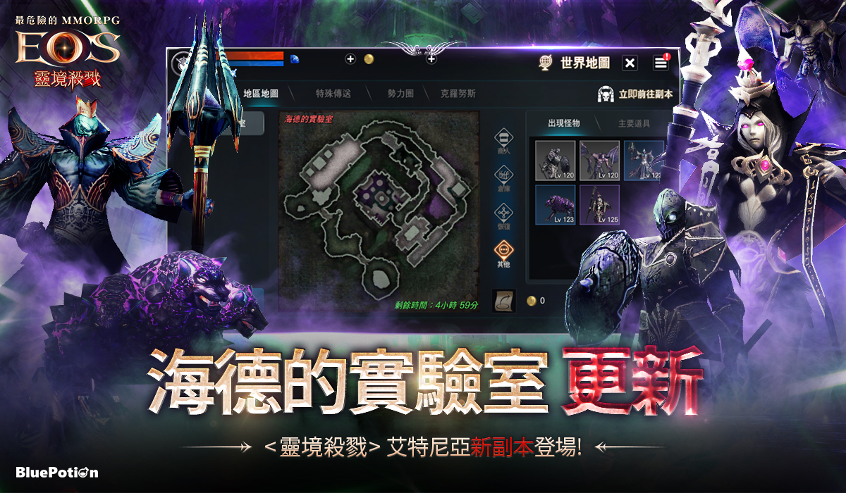 BluePotion 表示,由其自行開發並營運的手機正統 MMORPG《靈境殺戮》已於22日進行更新,並新增全新副本「海德的實驗室」。
