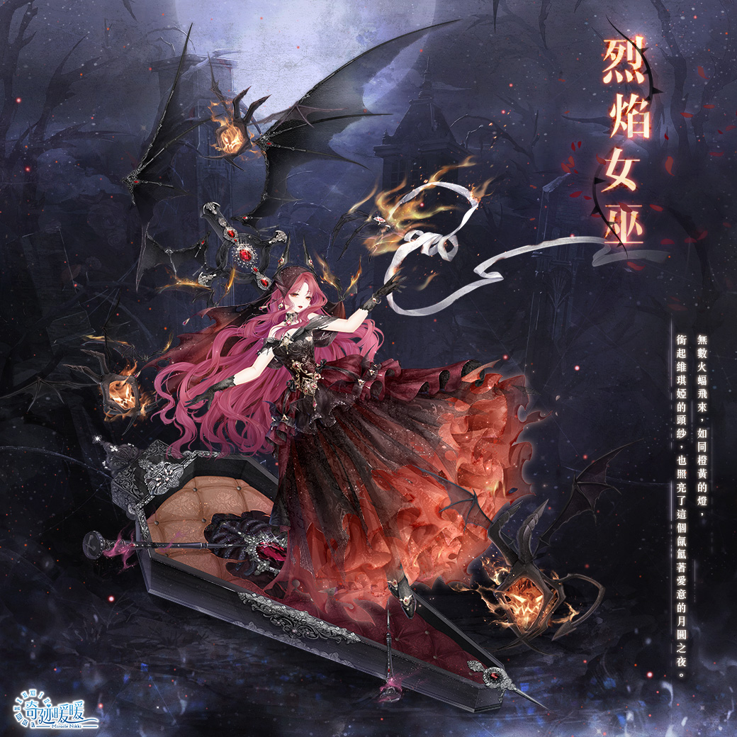 月圓之夜,懸崖之上的古堡顯露身影,女巫正在舉行暗夜舞會,揚起的橘紅色裙襬如同在黑夜中永不熄滅的燈火。