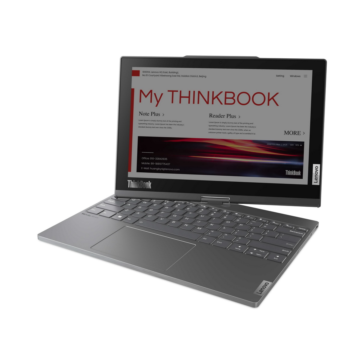 Lenovo 也公開了 ThinkBook Plus 系列的創新機種,結合可雙面旋轉的螢幕,一側為 OLED 面板、另一側則是彩色的電子紙螢幕,重新演繹翻轉筆電系列的招牌特色。Lenovo 同時發表搭載高效能配件的最新 ThinkBook 16p Gen 4 筆電。全新Lenovo Magic Bay 擴充配件,包括 Lenovo Magic Bay 4K 網路攝影機、Lenovo Magic Bay LTE 移動分享器或 Lenovo Magic Bay Light,搭配磁吸式連接埠,可輕鬆與電腦裝置協作使用提高生產力。