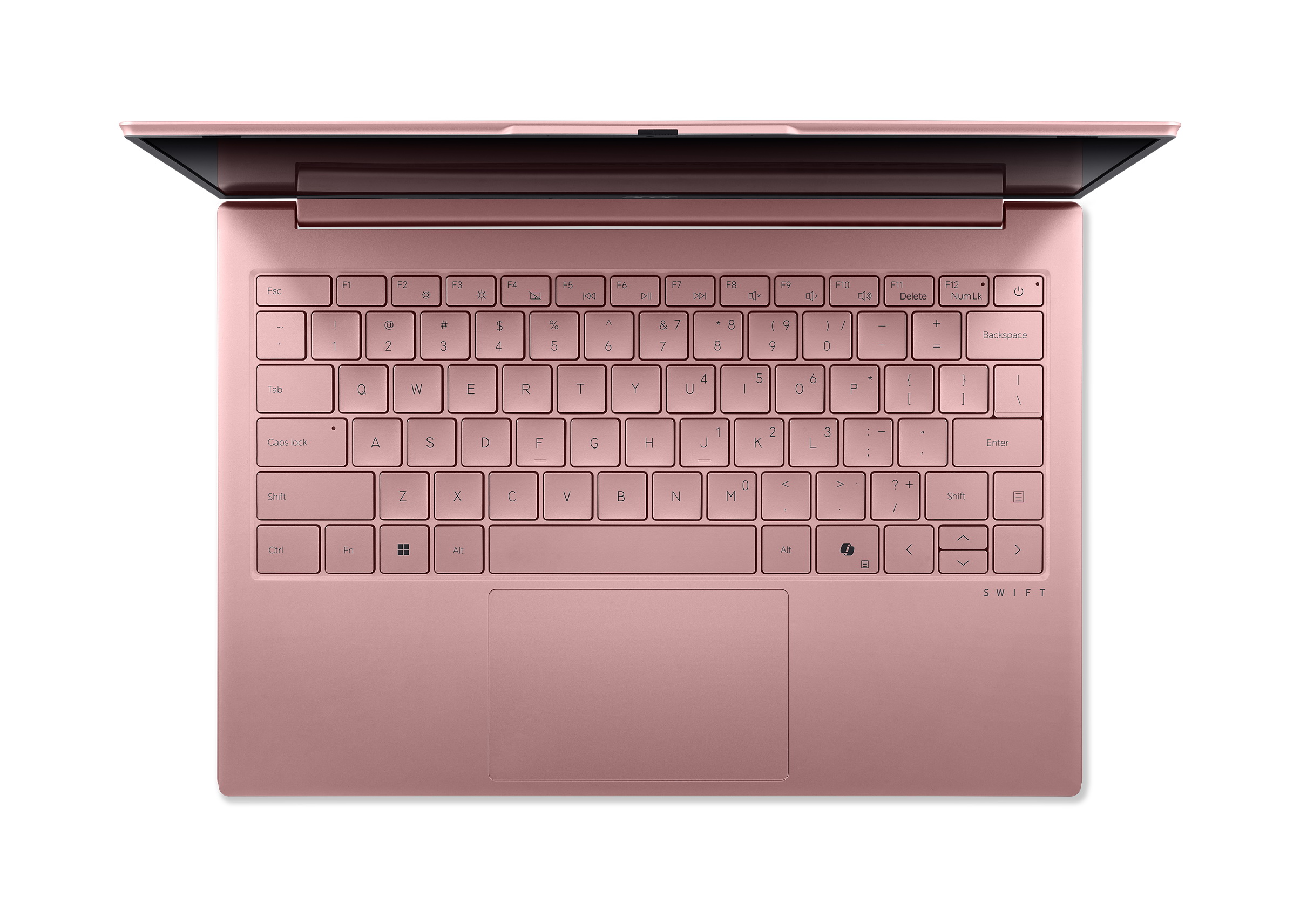 再添新色彩!宏碁熱銷的990公克AI筆電- Swift Lite 14 (SFL14-54M) 推出晨曦粉新色,精緻金屬機身纖巧僅1.54 cm,輕盈易攜,可180度攤平,搭配可擴充第二支SSD的優勢及持久的九小時續航,優雅展現時尚行動力。