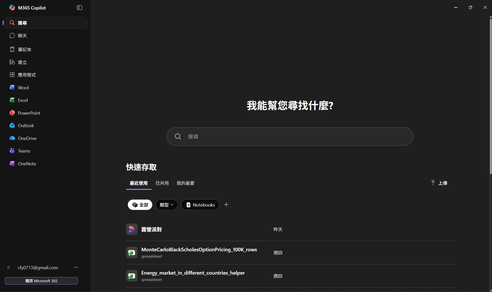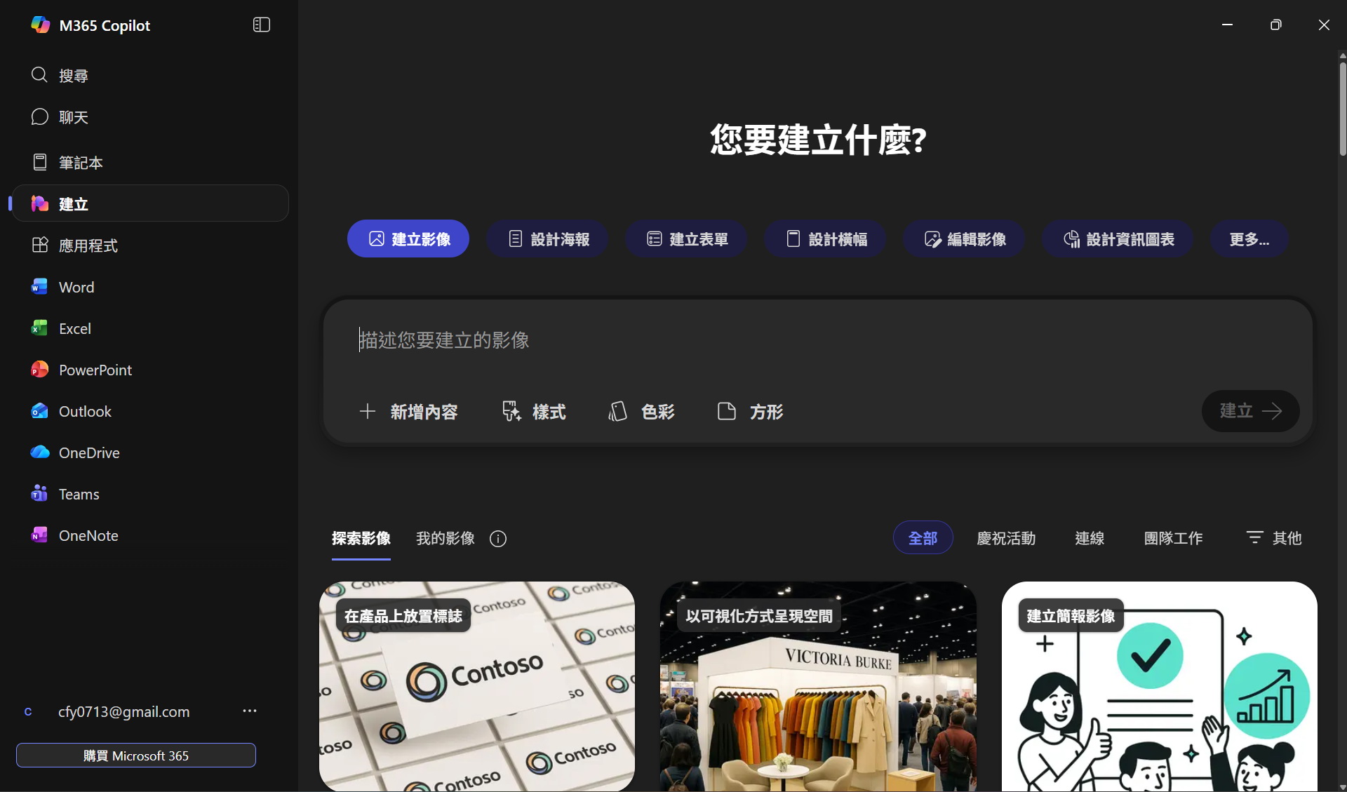 ▼ Microsoft 365 Copilot 應用程式釘選在工作列,完美整合搜尋,聊天及Office 應用程式,如 Word、PowerPoint、影像建立Designer 等,更方便切換使用。