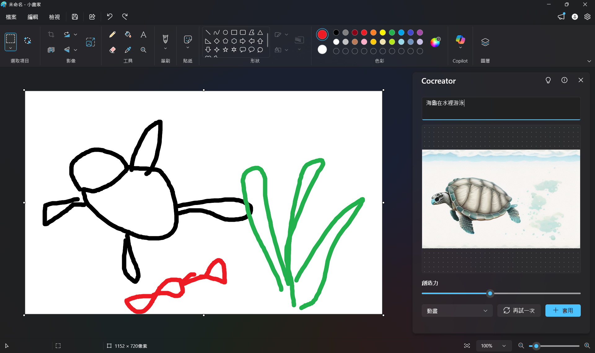 ▼ 小畫家Cocreator:透過文字或影像提示,選擇想要的風格及創意層級,輕鬆創作精美的影像,還真的鬼畫符也能變成精美的圖片,但此功能需先登入微軟帳號喔。