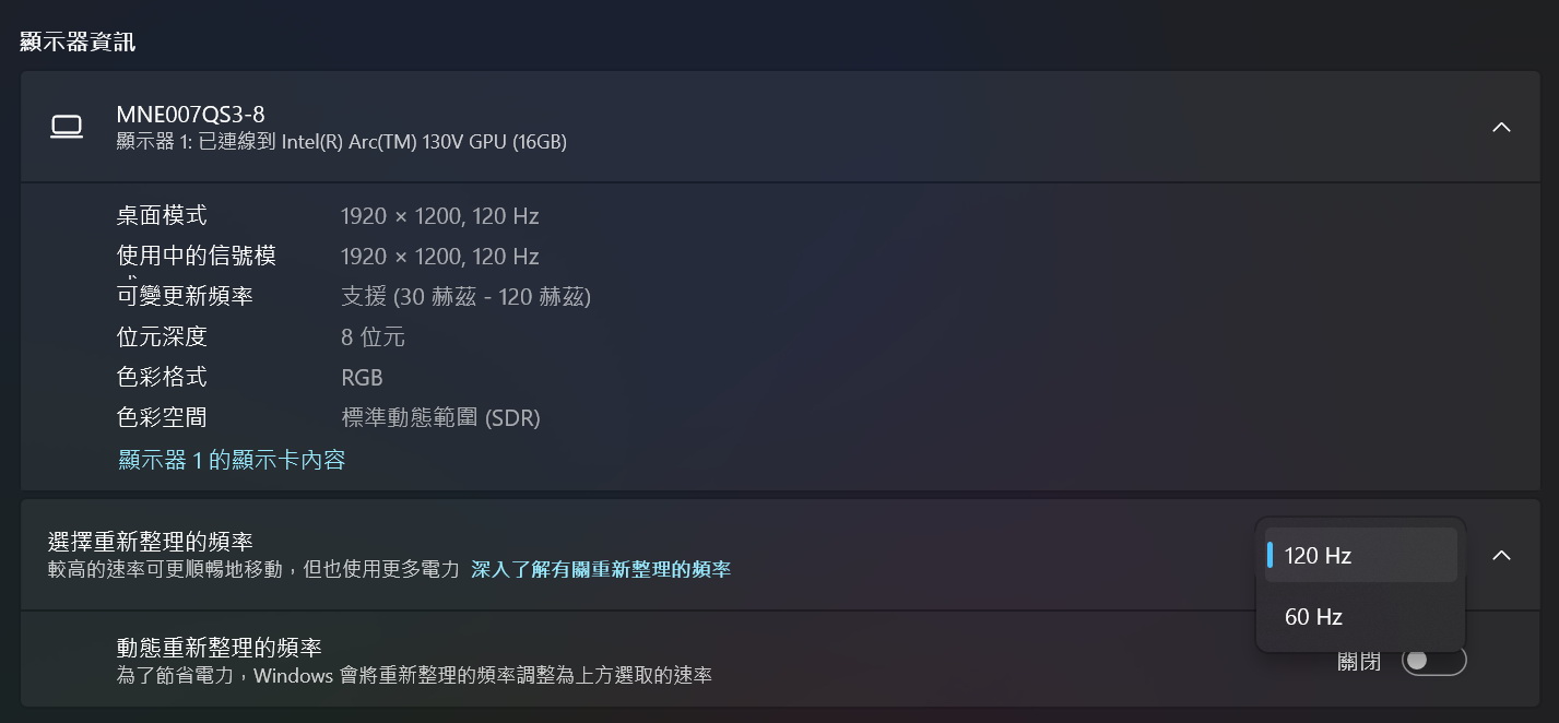 • 顯示晶片:Intel® ARC™ Graphics 130V